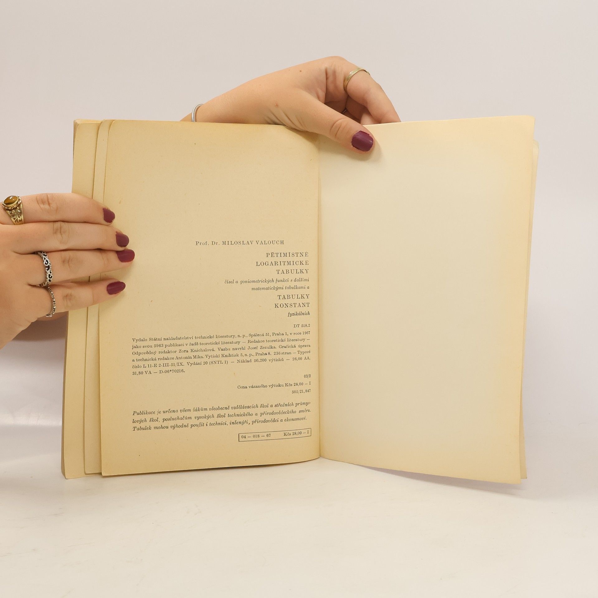 Pětimístné logaritmické tabulky čísel a goniometrických funkcí s dalšími matematickými tabulkami a tabulky konstant fyzikálních, Miloslav Valouch