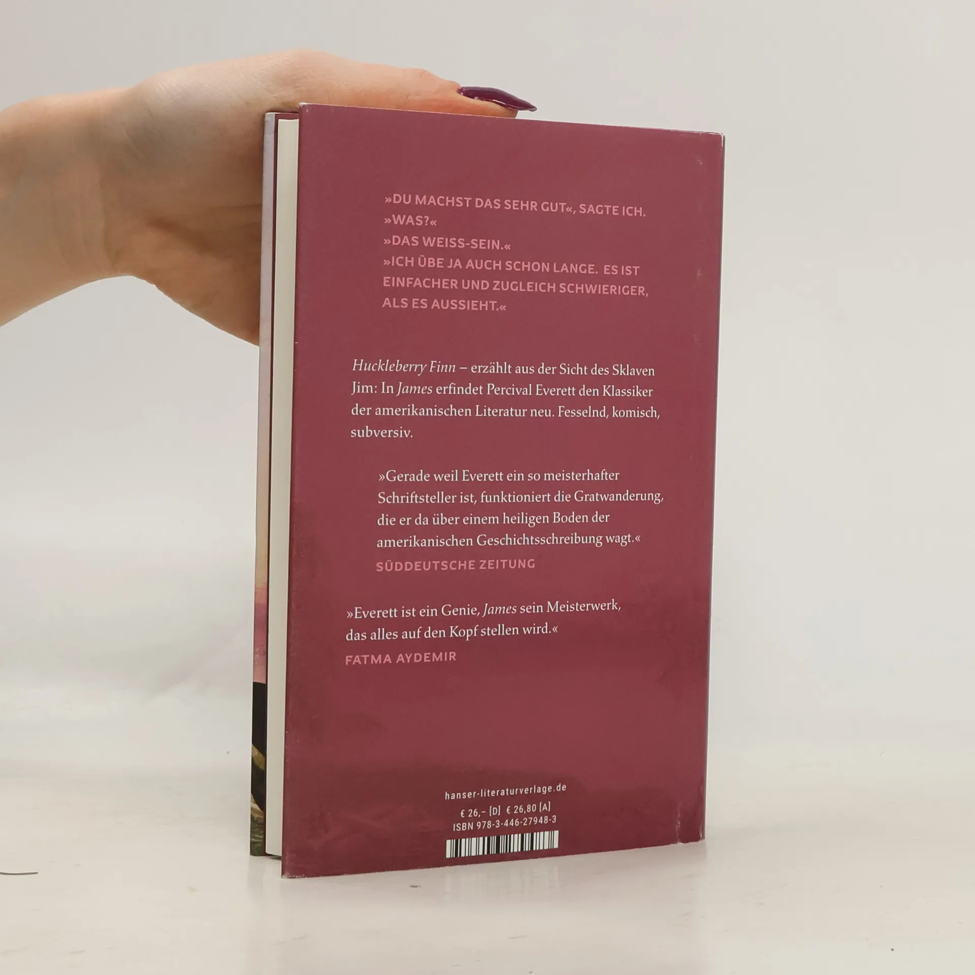 "Huckleberry Finn" wird zum Roman der Freiheit – in "James" erfindet Percival Everett den Klassiker der amerikanischen Literatur neu. National Book Award 2024 Jim spielt den Dummen. Es wäre zu gefährlich, wenn die Weißen wüssten, wie intelligent und gebildet er ist. Als man ihn nach New Orleans verkaufen will, flieht er mit Huck gen Norden in die Freiheit. Auf dem Mississippi jagt ein Abenteuer das nächste: Stürme, Überschwemmungen, Begegnungen mit Betrügern und Blackface-Sängern. Immer wieder muss Jim mit seiner schwarzen Identität jonglieren, um sich und seinen jugendlichen Freund zu retten. Percival Everetts „James“ ist einer der maßgeblichen Romane unserer Zeit, eine unerhörte Provokation, die an die Grundfesten des amerikanischen Mythos rührt. Ein auf den Kopf gestellter Klassiker, der uns aufrüttelt und fragt: Wie lesen wir heute? Fesselnd, komisch, subversiv.