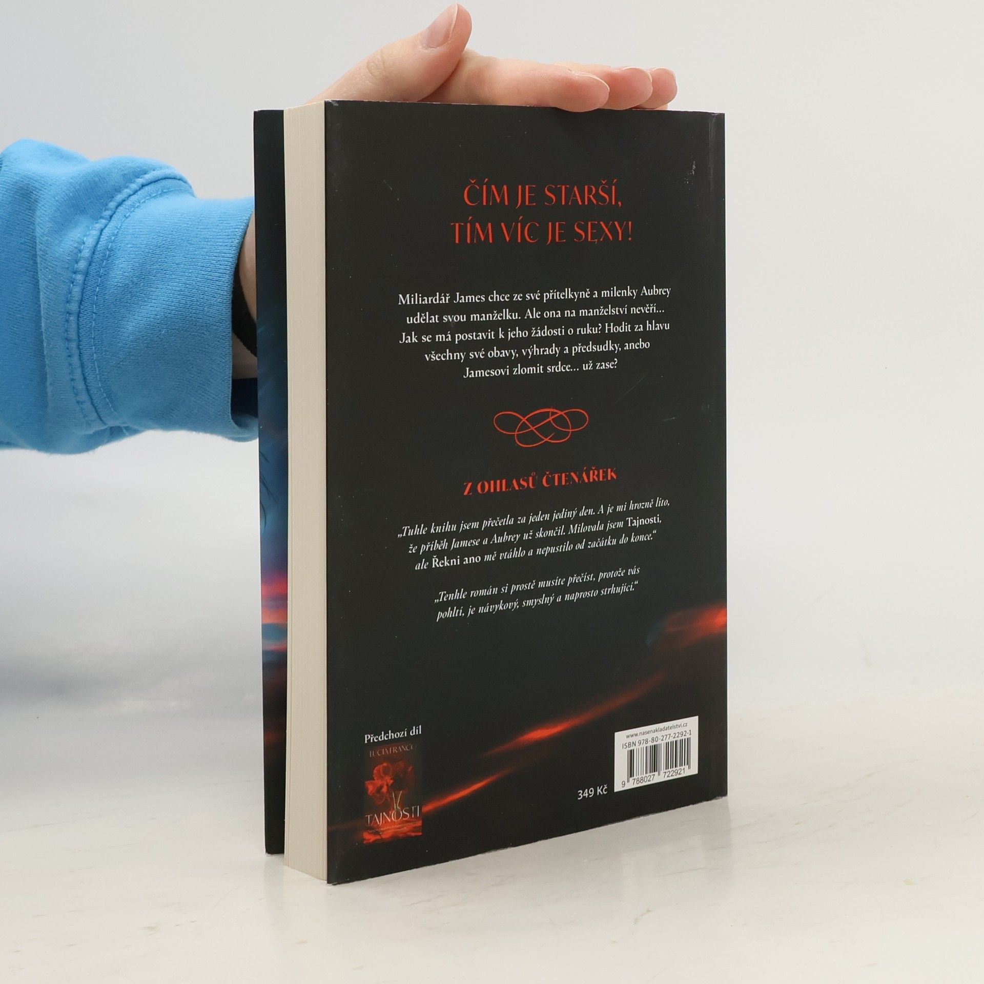 Pokračování erotické milostné série z prostředí manhattanské smetánky. Miliardář James chce ze své přítelkyně a milenky Aubrey udělat svou manželku. Ale ona na manželství nevěří... Jak se má postavit k jeho žádosti o ruku? Hodit za hlavu všechny své obavy, výhrady a předsudky, anebo Jamesovi zlomit srdce... už zase? Nakladatelská anotace.