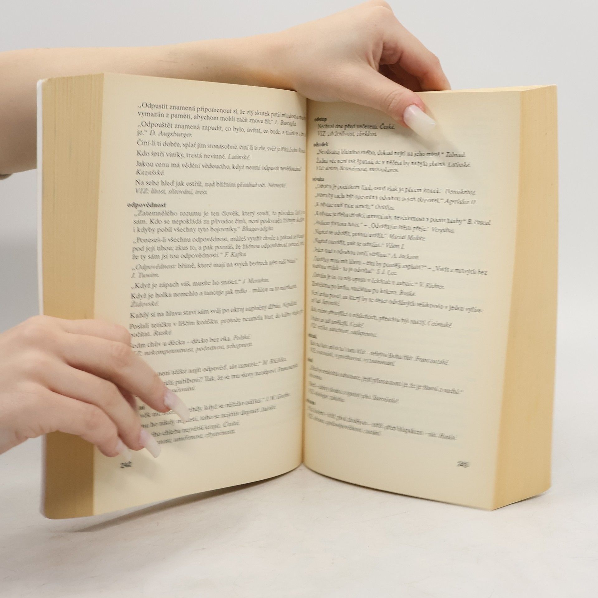 Zábavná encyklopedie moudrosti, ojedinělá šíří záběru, komplexností i přehledným uspořádáním, obsahuje 1500 hesel. Její součástí jsou citáty z písemných pramenů nejstarších civilizací a světových náboženství, myšlenky filozofů antických, sentence myslitelů současných, výroky slavných umělců, literátů a vědců. Dále přísloví národů celého euroasijského kontinentu, aforismy, jízlivosti, bontomy a lidová rčení.