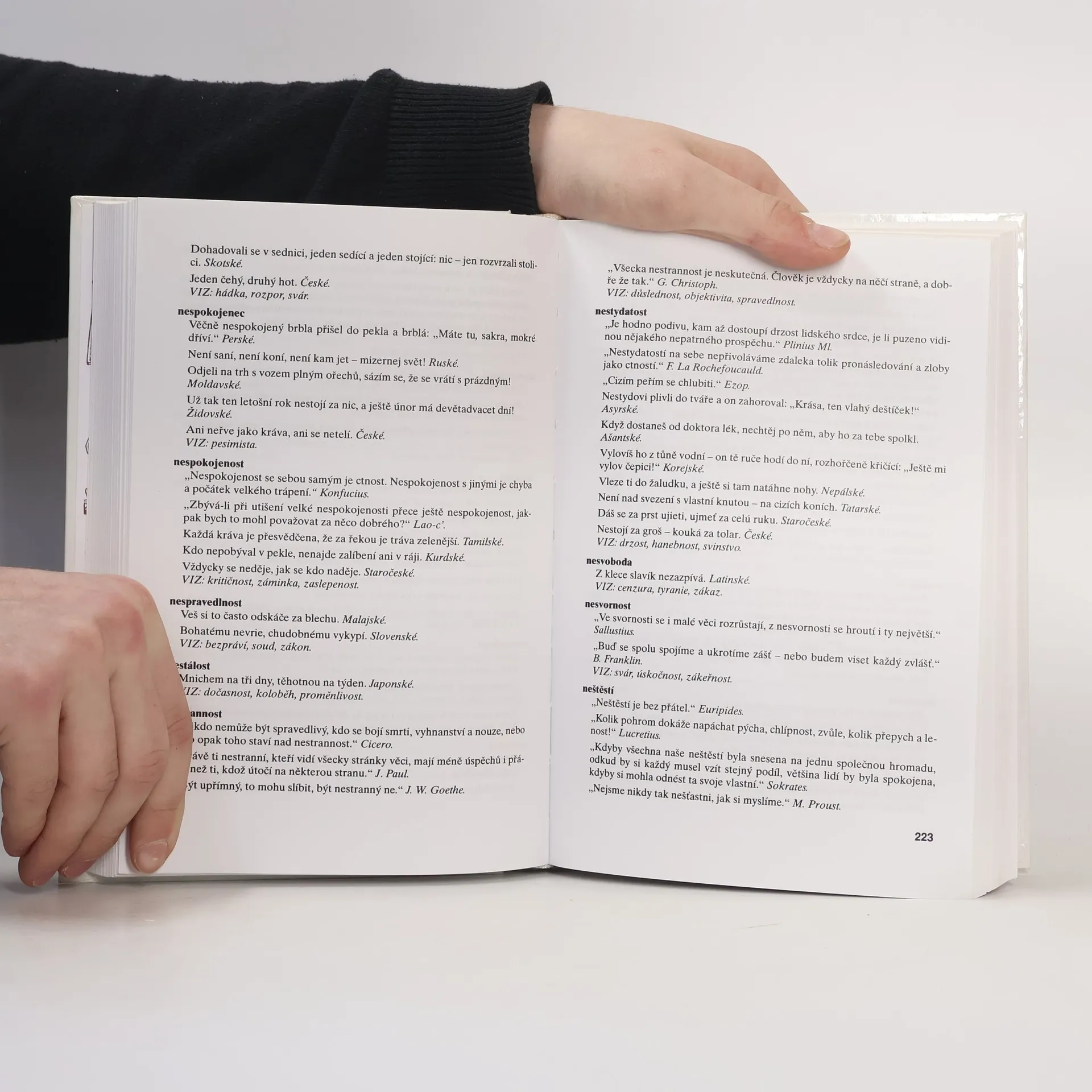 Zábavná encyklopedie moudrosti, ojedinělá šíří záběru, komplexností i přehledným uspořádáním. Citáty z písemných pramenů nejstarších civilizací a světových náboženství; myšlenky antických filozofů; sentence současných myslitelů; výroky slavných umělců, literátů a vědců. Přísloví národů celého eurasijského kontinentu, aforismy, jízlivosti, bonmoty, lidová rčení.