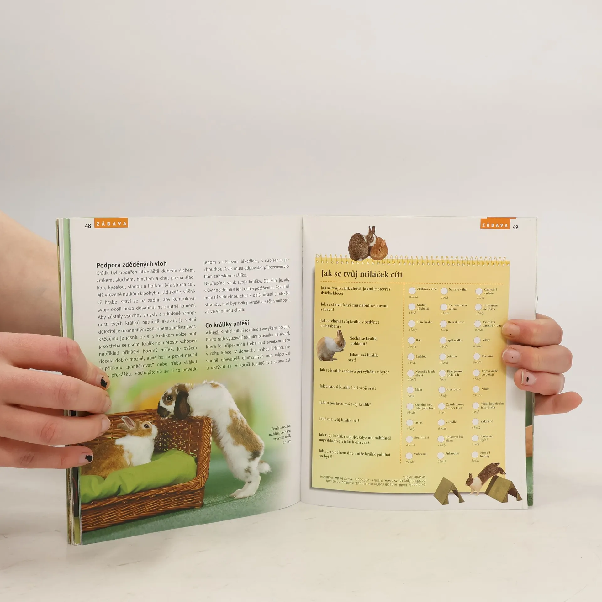 Obrázková publikace popisuje jak správně chovat zakrslého králíka, aby byl zdravý a cítil se dobře. Pro malé chovatele. Publikace je přehledně uspořádána a tak se na začátku dozvíme nezbytná pravidla pro vybavení klece, a dále o výživě a péči o zakrslého králíka. V kapitole Přátelství se čtenář může dozvědět, jak si získat důvěru tohoto zvířátka a poslední kapitoly ukážou jak si lze s králíkem hrát a na závěr jsou opět informace a rady, tentokrát jak docílit, aby se zakrslý králík dožil aktivního stáří. Publikace je prokládána mnoha barevnými fotografiemi, rozkládacím textem a zpestřena příběhy o králíčcích. Orientaci usnadňuje i malý rejstřík.