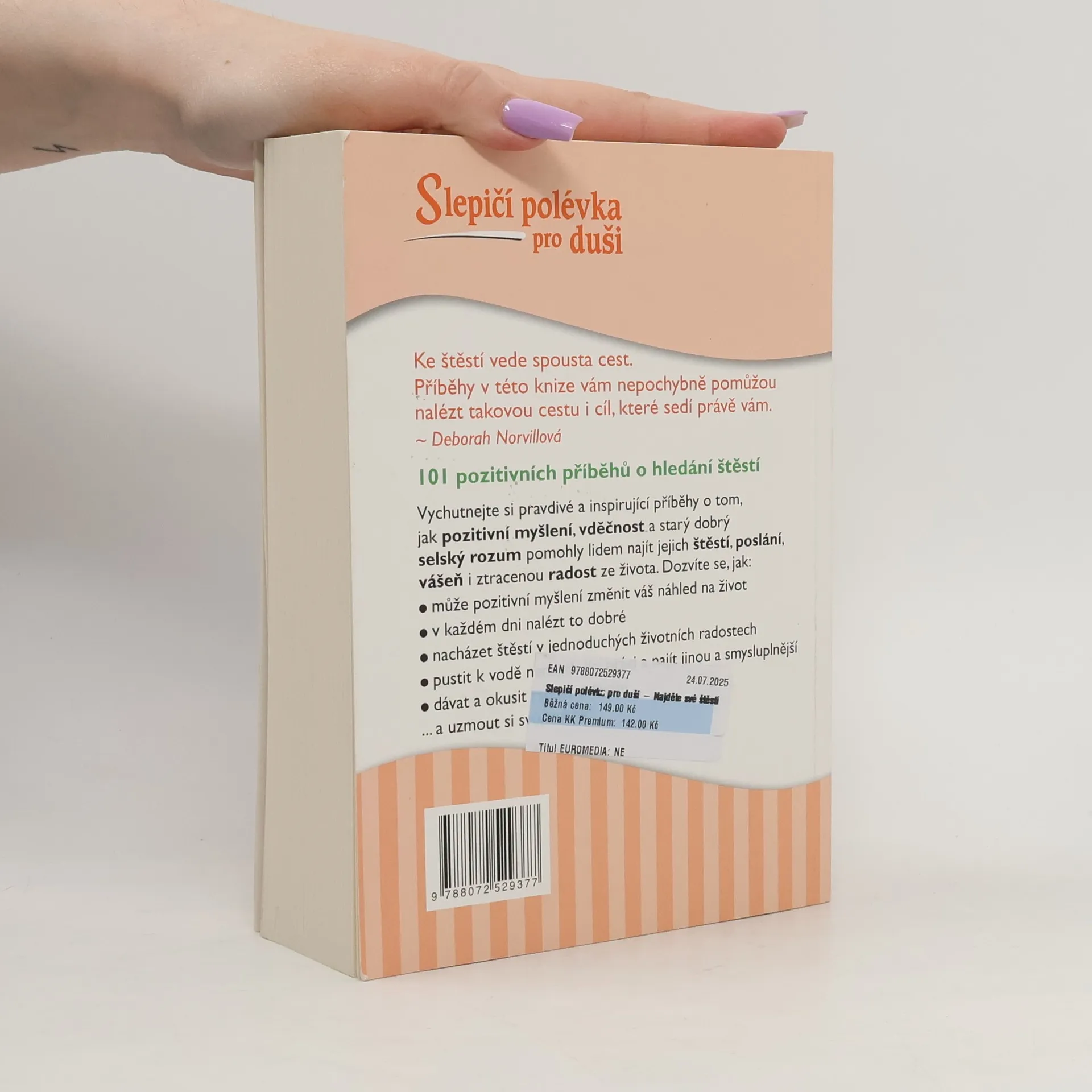 Ke štěstí vede spousta cest. Příběhy v této knize vám nepochybně pomůžou nalézt takovou cestu i cíl, které sedí právě vám. Vychutnejte si pravdivé a inspirující příběhy o tom, jak pozitivní myšlení, vděčnost a starý dobrý selský rozum pomohly lidem najít jejich štěstí, poslání, vášeň i ztracenou radost ze života. Dozvíte se jak: může pozitivní myšlení změnit váš náhled na život v každém dni nalézt to dobré jak si vážit toho, co máte nacházet štěstí v jednoduchých životních radostech pustit k vodě nenaplňující práci a najít jinou a smysluplnější dávat a okusit radost z dávání ... a uzmout si svůj cukřík! Předmluva Deborah Norvillová