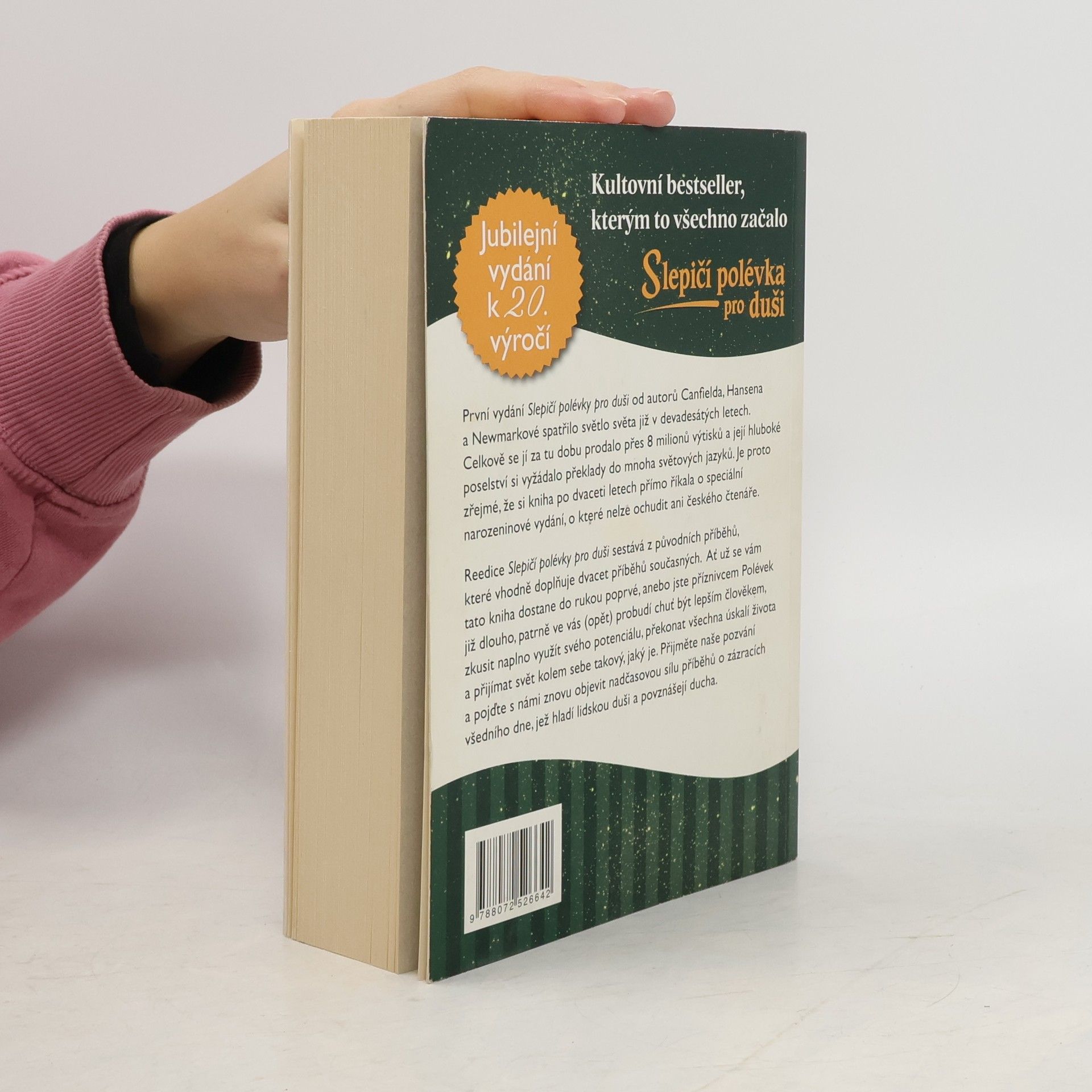 První vydání Slepičí polévky pro duši od autorů Canfielda, Hansena a Newmarkové spatřilo světlo světa již v devadesátých letech. Celkově se jí za tu dobu prodalo přes 8 milionu výtisků a její hluboké poselství si vyžádalo překlady do mnoha světových jazyků. Je proto zřejmé, že si kniha po dvaceti letech přímo říkala o speciální narozeninové vydání, o které nelze ochudit ani českého čtenáře. Reedice Slepičí polévky pro duši sestává z původních příběhů, které vhodně doplňuje dvacet příběhů současných. Ať už se vám tato kniha dostane do rukou poprvé, anebo jste příznivcem Polévek již dlouho, patrně ve vás (opět) probudí chuť být lepším člověkem, zkusit naplno využít svého potenciálu, překonat všechna úskalí života a přijímat svět kolem sebe takový, jaký je. Přijměte naše pozvání a pojďte s námi znovu objevit nadčasovou sílu příběhů o zázracích všedního dne, jež hladí lidskou duši a povznášejí ducha.
