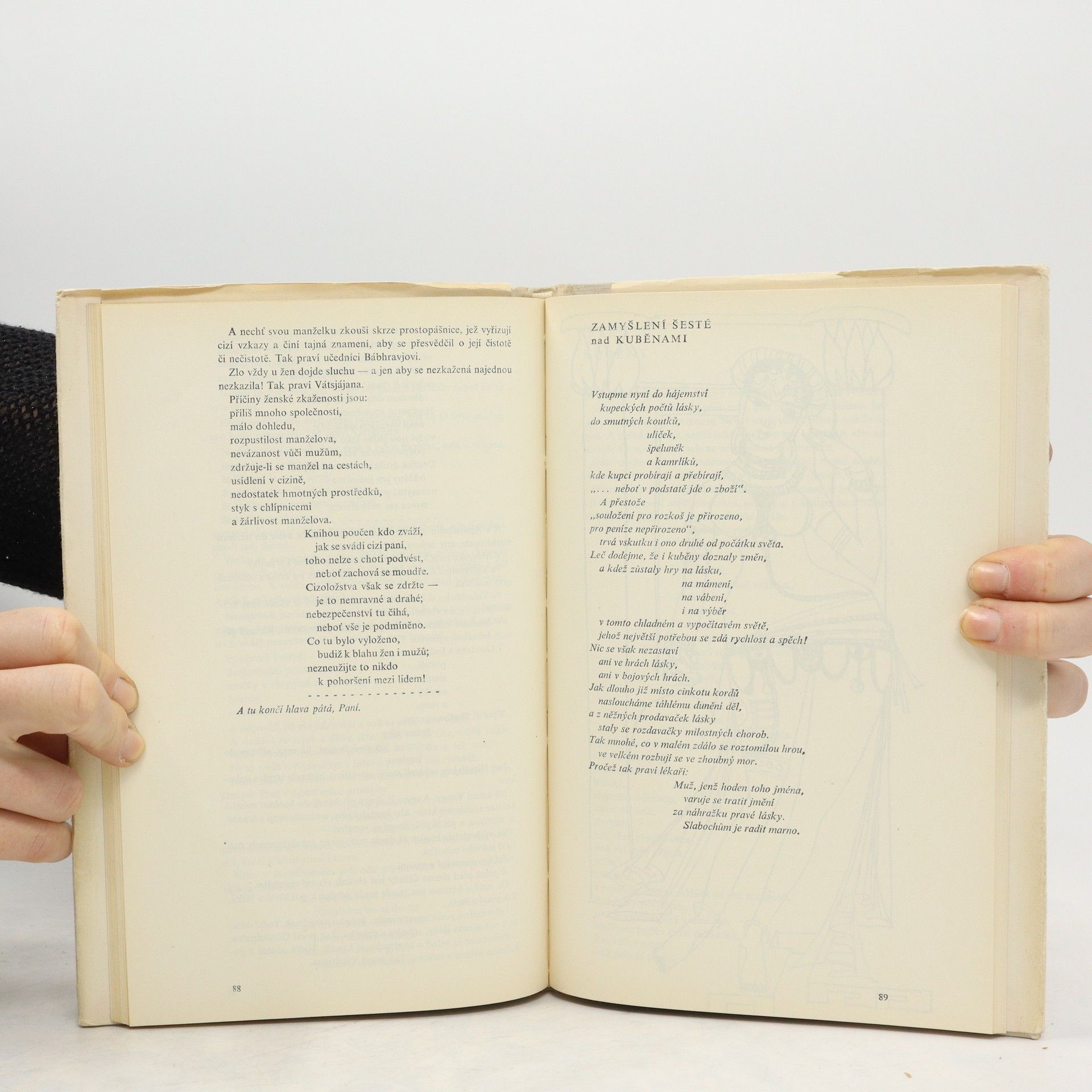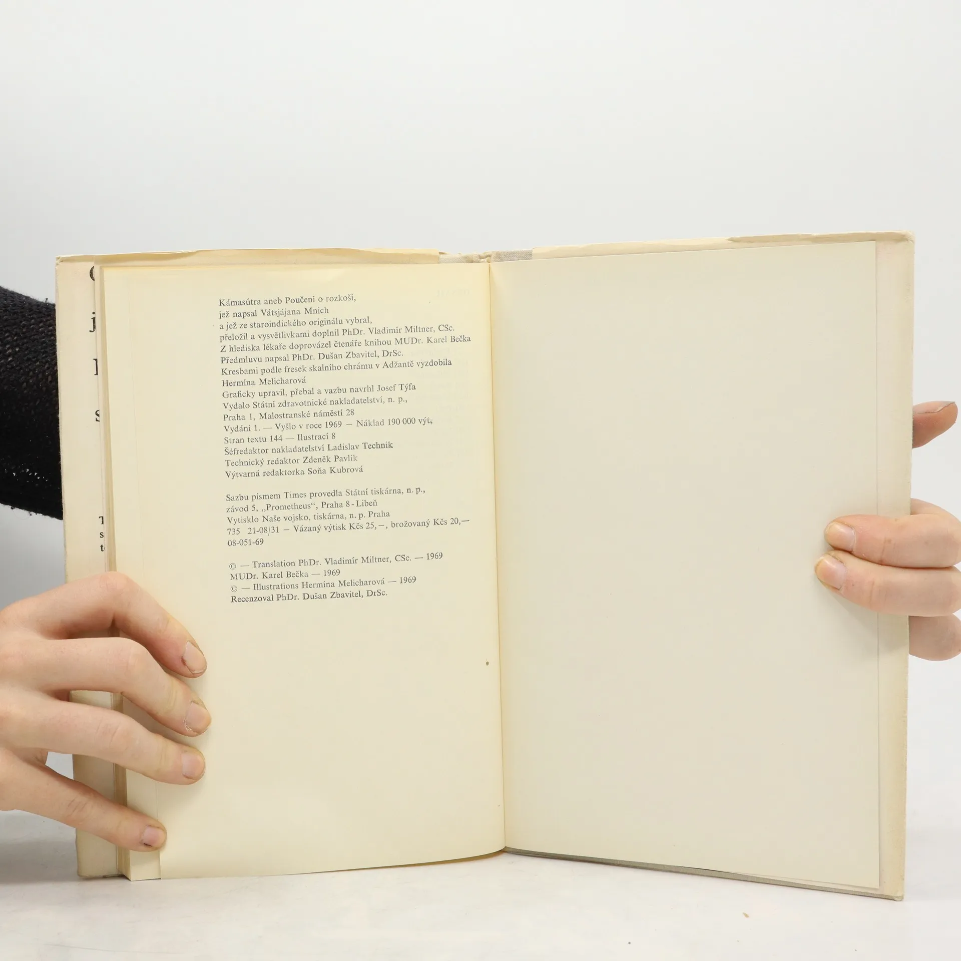 Toto je první kniha Kámasútry přeložená přímo ze staroindického originálu, která vyšla poprvé v Československu v roce 1969, bohužel některé části byly vypuštěny díky komunistickým cenzorům. Knihu přeložil a vysvětlivkami doplnil PhDr. Vladimír Miltner, CSc. Z hlediska lékaře doprovázel čtenáře knihou MUDr. Karel Bečka. Kresbami podle fresek vyzdobila Hermína Melicharová. Vátsjájanova Kámasútra, která vznikla někdy ve. 4.-5: století našeho letopočtu, je nejstarším dochovaným spisem, jenž se vědecky zabývá rozkoší, jedním z trojího smyslu života. Trochu zjednodušeně řečeno - je to podrobná učebnice lásky, v níž autor, odvolávaje se často na starší své předchůdce v tomto vědním oboru, podává ucelené poučení o milostném hemžení ve staré Indii.