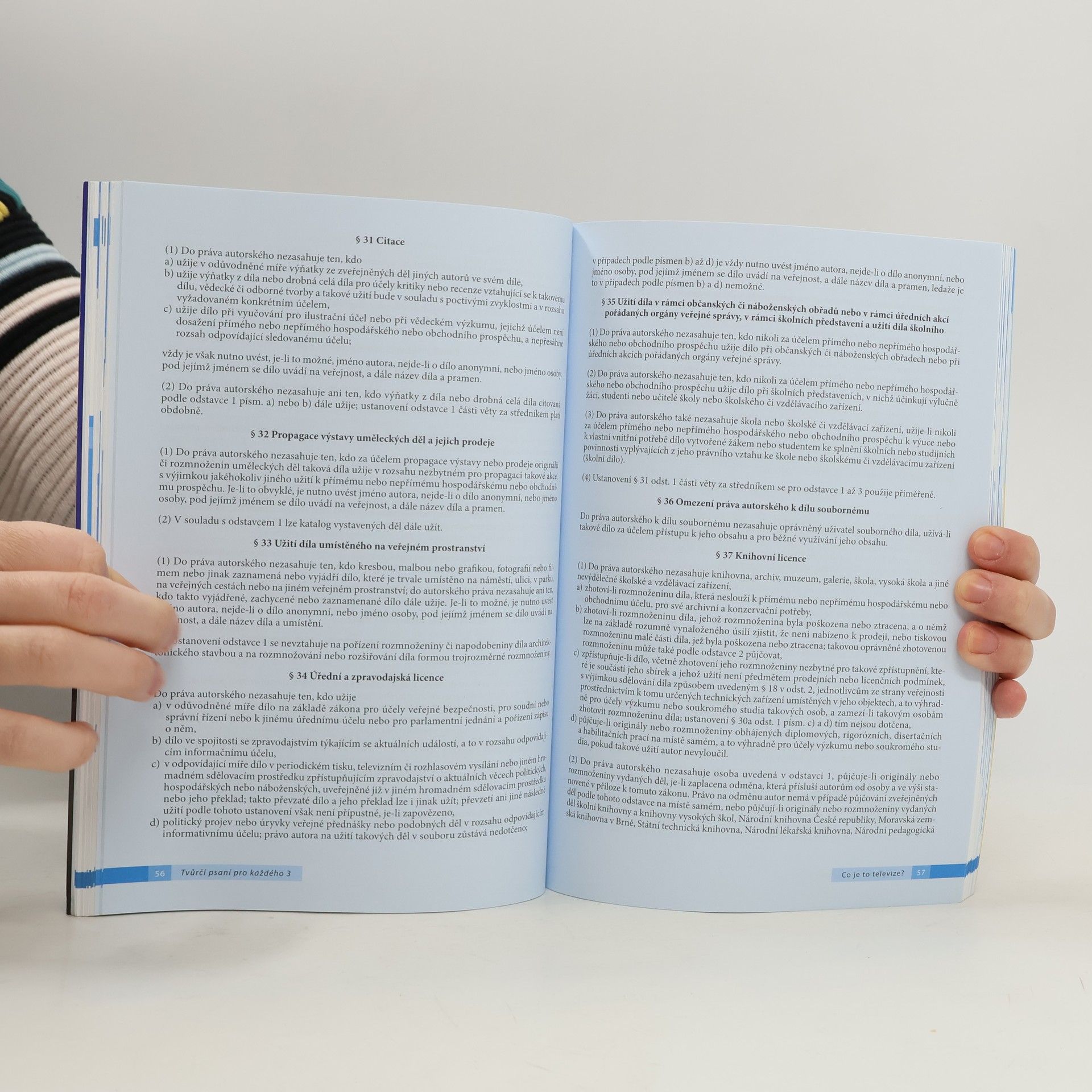 Tvůrčí psaní pro každého 3 je dalším z titulů, který navazuje na úspěšnou řadu učebnic "TVŮRČÍ PSANÍ PRO KAŽDÉHO" a tentokrát se zaměřuje na tvůrčí psaní pro televizi. Na českém trhu dosud neexistuje učebnice, která by zájemce o televizní tvorbu tak detailně seznamovala s prací televizního scenáristy, a to ze všech různých úhlů pohledu. Učebnice je rozdělena na tři základní části - na část "Co je to televize", kde se čtenáři seznámí nejen s profesí scenáristy, ale se všemi dalšími důležitými zákonitostmi fungování televize, dále na část zvanou "tvorba dramatická" a na část zvanou "tvorba zábavná". Ve druhé ze jmenovaných částí se čtenáři dozvědí, jak funguje psaní televizních scénářů pro filmy a televizní seriály, a to od prvotního nápadu, až po finální realizaci. Nesmírně cenná je zejména ta část, která se velmi detailně věnuje televizní seriálové tvorbě, protože tato problematika zatím nikdy ještě nebyla v žádné české učebnici zpracována. Třetí jmenovaná část se naopak věnuje oblas ti televizní zábavy, tedy psaní scénářů pro nejrůznější zábavné pořady, pro soutěžní pořady (tzv. game show) apod. Nechybí samozřejmě informace o tom, jak své scénáře nabízet apod.