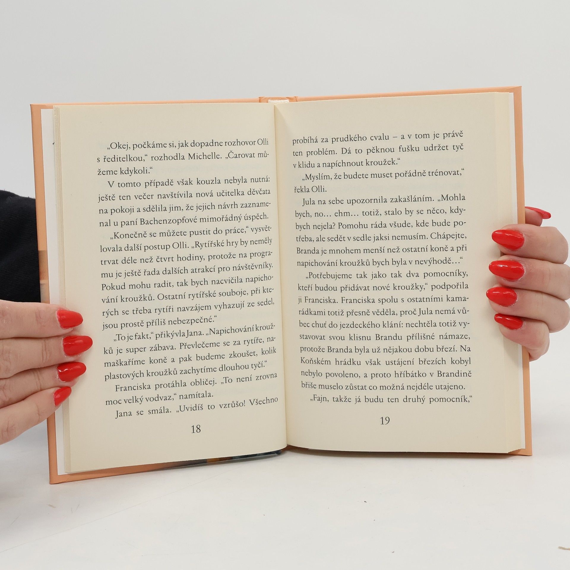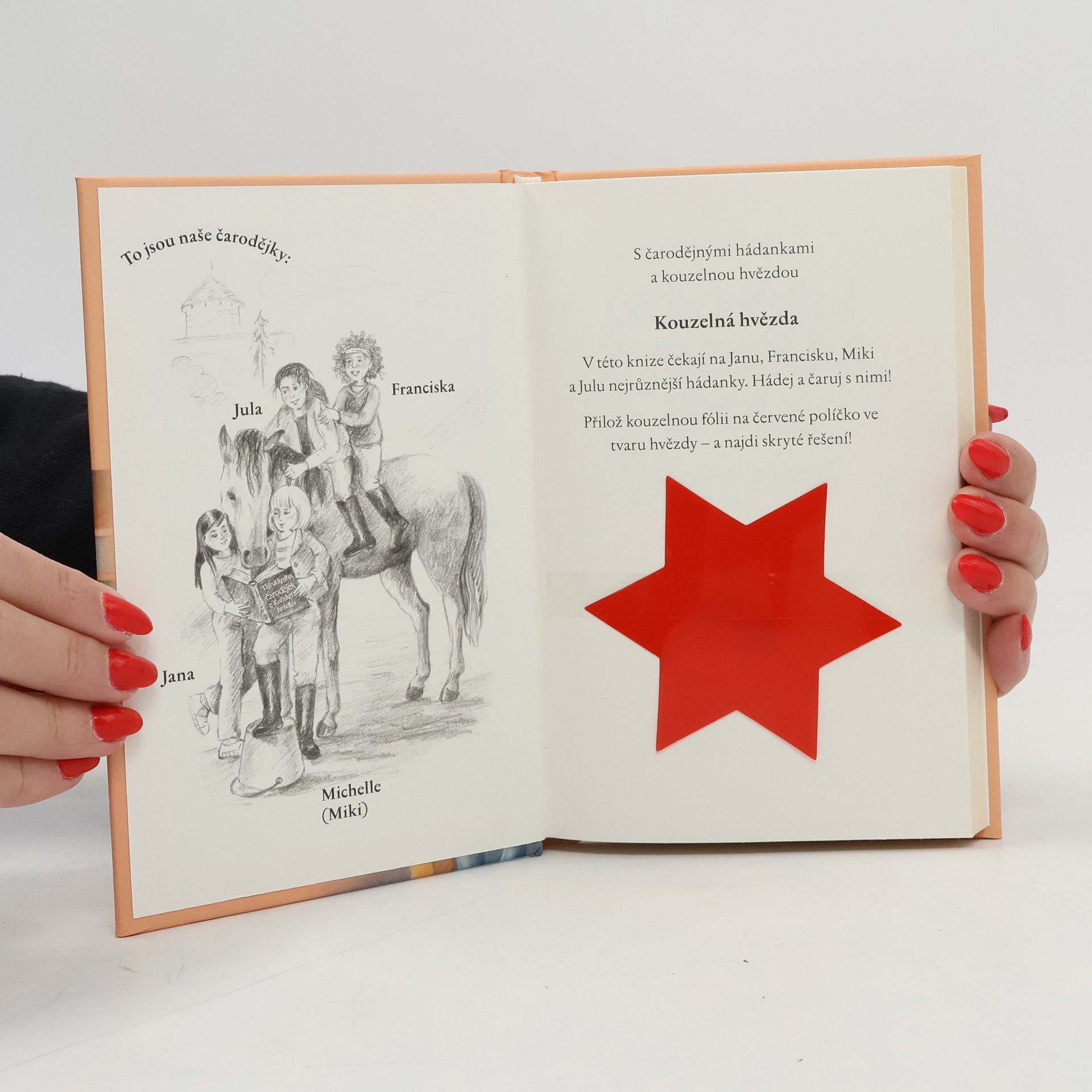 Také bys chtěla chodit do školy, kde budeš jezdit na koni a čarovat? Vítej na Koňském hrádku! Na Koňském hrádku se chystají velkolepé hradní slavnosti. Jana, Jula, Michelle a Franciska na nich chtějí předvést rytířské hry na koních. Uprostřed příprav se však na školním dvoře zjeví záhadný přízrak. A to není všechno! Školní chodby někdo pocákal červenou barvou a na podlaze se objevily obří stopy. Co za tím vším vězí? Skutečná strašidla přece neexistují. Nebo snad ano? Dobrodružné čtení pro holky, kterým kouzla nejsou cizí.