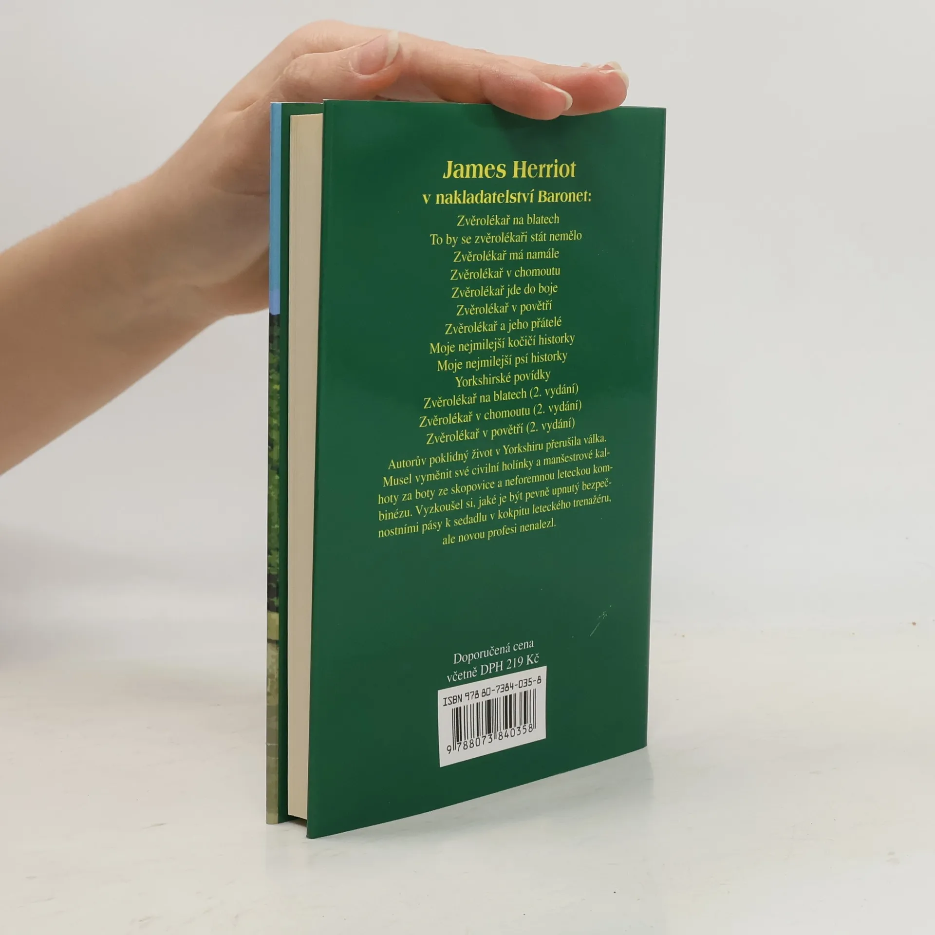 James Herriot, pevně upnutý v bezpečnostních pásech v kokpitu leteckého trenažéru, musel vyměnit své civilní holínky a manšestrové kalhoty za boty ze skopovice a neforemnou leteckou výbavu, ale novou profesi nenalezl. Nakonec RAF musely přijmout na jeho stanovisko... Další svazek jeho pamětí zastihuje autora snícího o dni, kdy se bude moci vrátit ke své ženě Heleně a k malému synkovi, společníkovi a veterináři Siegfriedovi, věčnému studentu Tristanovi - a všem starým přátelům z Darowby - dvounohým i čtyřnohým. Herriotova knížka je vyprávěním o úspěších i omylech, o životních výhrách i klopýtnutích, s nimiž se každý musí vyrovnat.