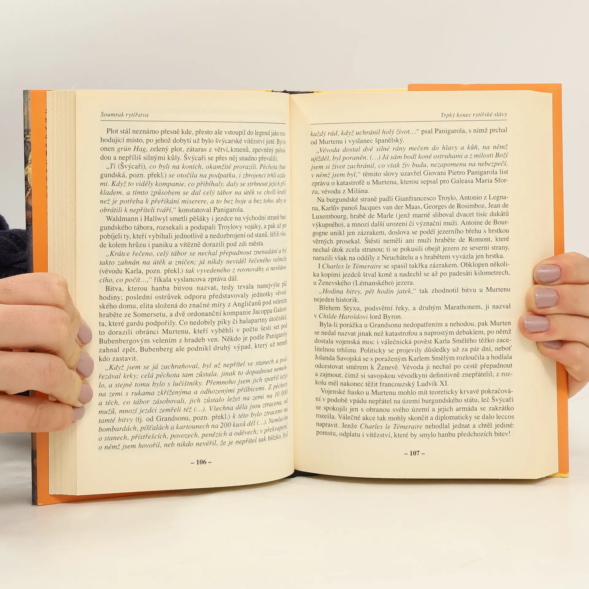 Soumrak rytířstva, čtvrtý a závěrečný svazek projektu Rytířské bitvy a osudy, vypráví o posledních rytířských střetech a osobnostech „podzimu středověku“, o časech, kdy na bojištích získávaly hlavní slovo neurozená pěchota a střelné zbraně. Válkou růží projdeme přes bitvu u Towtonu, staneme se svědky vzestupu i pádu „Králotvůrce“ Warwicka a budeme uvažovat, kde i jak došlo k poslednímu boji krále Richarda III. Skrze tři rychle za sebou jdoucí bitvy, Grandson, Murten a Nancy, spatříme trpký konec rytířské slávy burgundského vévody Karla Smělého, budeme sledovat boje hrdých Maurů i pyšných španělských rytířů o Granadu. Skrze bitvu u Fornova a životní osudy Pierra Bayrda, jemuž dali už současníci přídomek Rytíř bez bázně a hany, se přeneseme do posledních rytířských střetů na italských bojištích, za nimiž udělala tečku bitva u Pávie, kterou ani jedna strana nechtěla... (Knižní web)