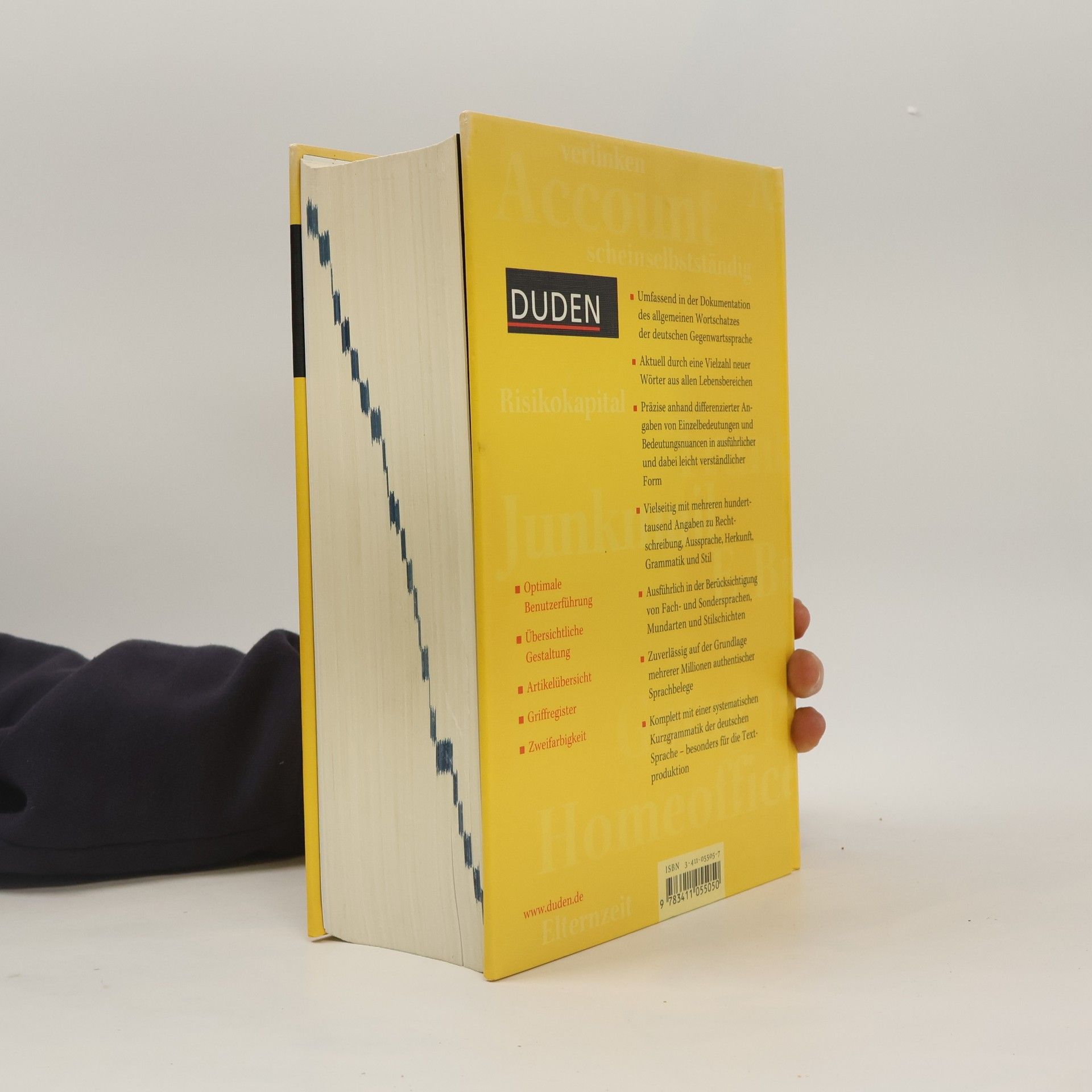 Über 250.000 Wörter, Redewendungen, Anwendungsbeispiele und mehrere Hunderttausend Angaben zu Rechtschreibung, Aussprache, Herkunft, Grammatik und Stil.