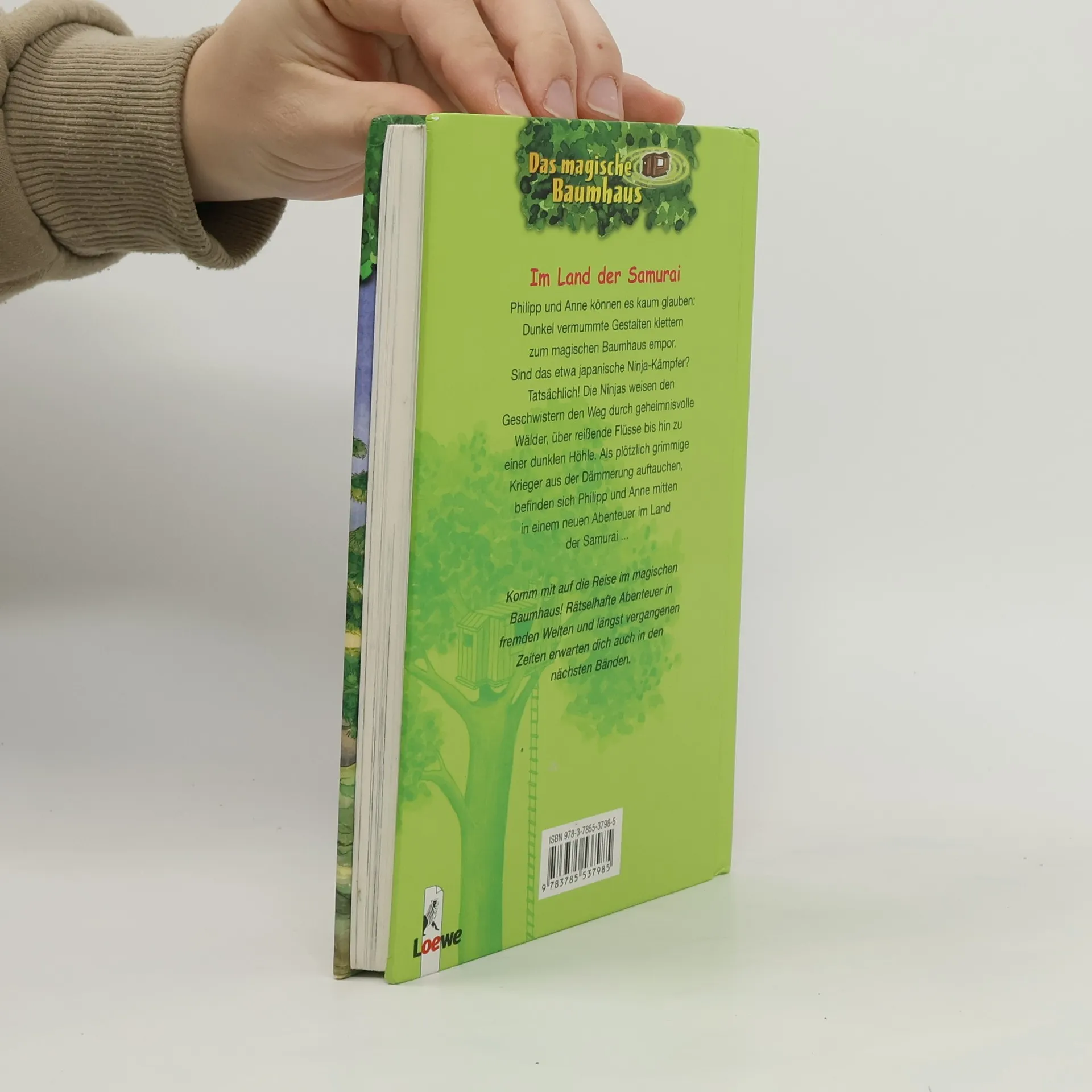 Philipp und Anne können es kaum glauben: Dunkel vermummte Gestalten klettern zum magischen Baumhaus empor. Das können nur japanische Ninja-Kämpfer sein! Die Ninjas weisen den Geschwistern den Weg durch geheimnisvolle Wälder, über reißende Flüsse bis hin zu einer dunklen Höhle. Als plötzlich grimmige Krieger aus der Dämmerung auftauchen, befinden sich Philipp und Anne mitten in einem neuen Abenteuer im Land der Samurai ... Komm mit auf die Reise im magischen Baumhaus! Rätselhafte Abenteuer in fremden Welten und längst vergangenen Zeiten erwarten dich auch in den anderen Bänden. Die beliebte Kinderbuch-Reihe von Bestsellerautorin Mary Pope Osborne! Die Geschwister Anne und Philipp reisen mit dem magischen Baumhaus durch die Zeit. Sie erleben spannende Abenteuer, entdecken ferne Länder und lernen viele berühmte Persönlichkeiten kennen.