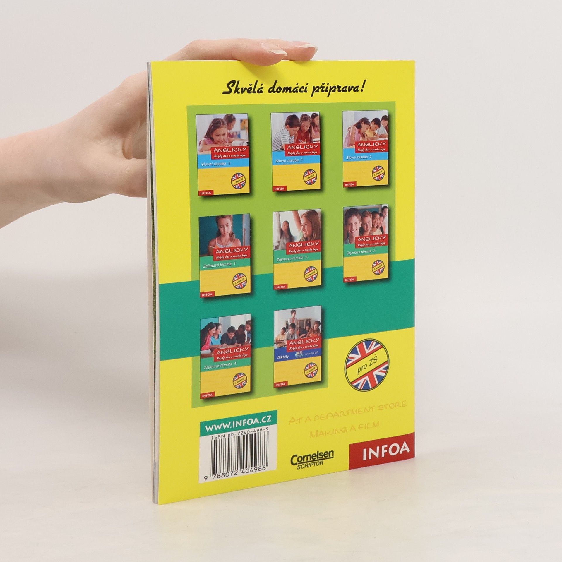 Tento doplňkový pracovní sešit je určen pro 2. stupeň ZŠ. Nabízí v každé kapitole jedno téma, jehož zpracování zabere čtvrt až půl hodiny. Vpisuje se přímo do sešitu, uprostřed je vložená část řešení. Učte se pravidelně anglicky a budete na tom každý den o trochu lépe. Barevně ilustrováno.