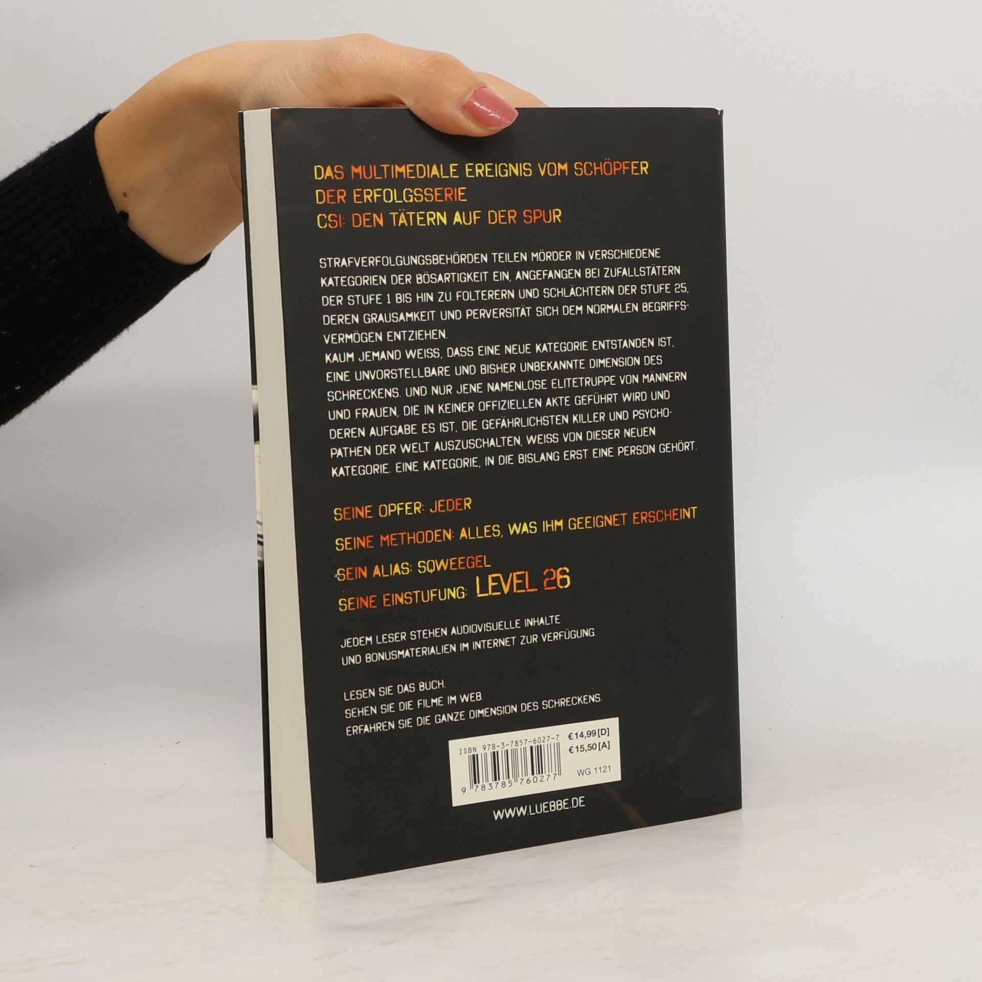 Strafverfolgungsbehörden teilen Mörder in verschiedene Kategorien der Bösartigkeit ein, angefangen bei Zufallstätern der Stufe 1 bis hin zu Folterern und Schlächtern der Stufe 25, deren Grausamkeit und Perversität sich dem normalen Begriffsvermögen entziehen. Kaum jemand weiß, dass eine neue Kategorie entstanden ist, eine unvorstellbare und bisher unbekannte Dimension des Schreckens. Und nur jene namenlose Elitetruppe von Männern und Frauen, die in keiner offiziellen Akte geführt wird und deren Aufgabe es ist, die gefährlichsten Killer und Psychopathen der Welt auszuschalten, weiß von dieser neuen Kategorie. Eine Kategorie, in die bislang erst eine Person gehört. Seine Opfer: Jeder Seine Methoden: Alles, was ihm geeignet erscheint Sein Alias: Sqweegel Seine Einstufung: Level 26 Jedem Leser stehen audiovisuelle Inhalte und Hintergründe im Internet zur Verfügung. LESEN Sie das Buch. SEHEN Sie die Filme im Web. ERFAHREN Sie die ganze Dimension des Schreckens.