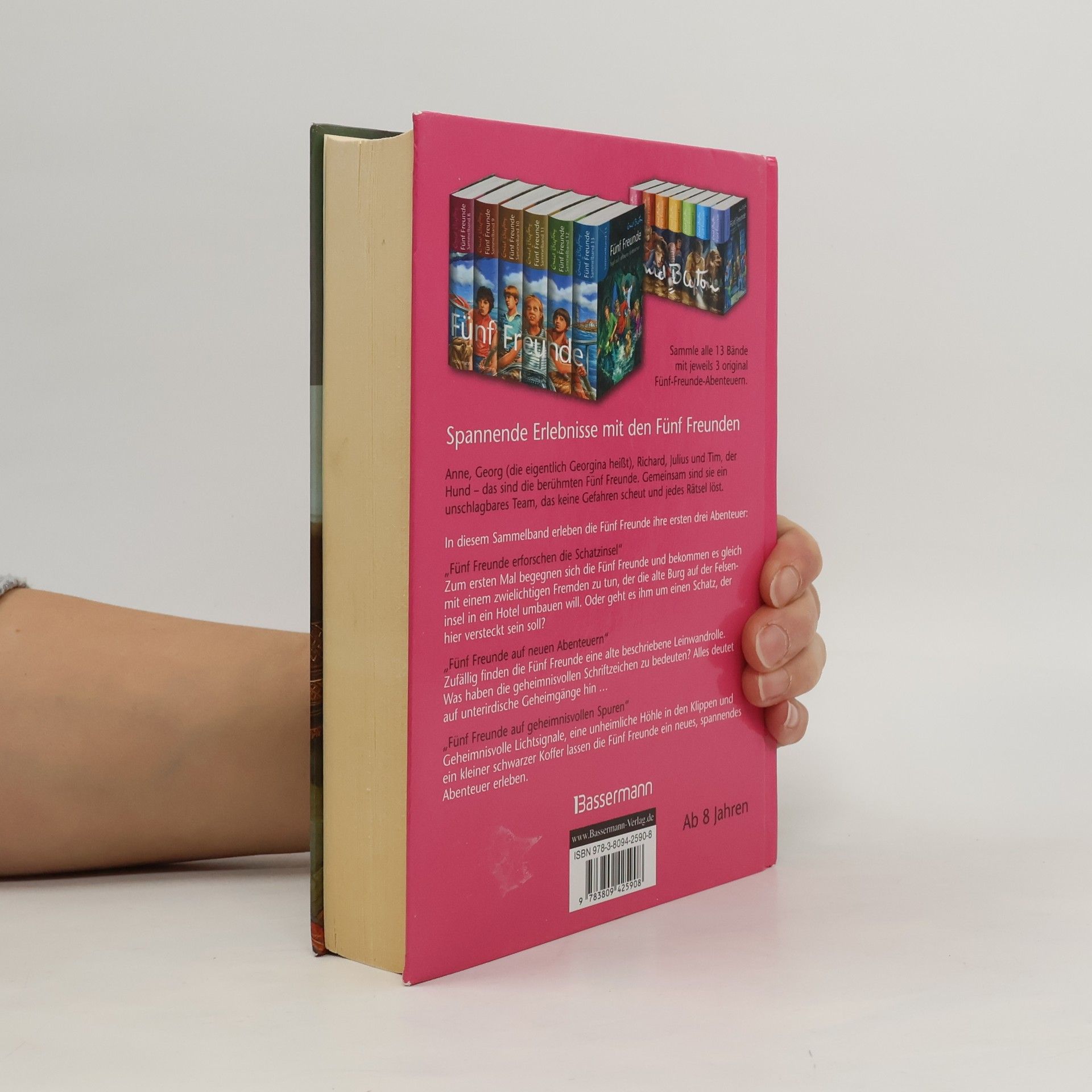 Spannende Erlebnisse der fünf Freunde – wie alles begann Seit über 50 Jahren fiebern Kinder mit, wenn die Fünf Freunde Anne, Georg (die eigentlich Georgina heißt), Richard, Julius und der Hund Tim in alten Gemäuern, dunklen Höhlen oder unterirdischen Gängen verborgene Schätze aufspüren oder sich gegen finstere Gestalten behaupten. Die ersten drei aufregenden Abenteuer der Fünf Freunde hält dieser Sammelband bereit: - "Fünf Freunde erforschen die Schatzinsel"Zum ersten Mal begegnen sich die Fünf Freunde und bekommen es gleich mit einem zwielichtigen Fremden zu tun, der die alte Burg auf der Felseninsel in ein Hotel umbauen will. Oder geht es ihm um einen Schatz, der hier versteckt sein soll? - "Fünf Freunde auf neuen Abenteuern"Zufällig finden die Fünf Freunde eine alte beschriebene Leinwandrolle. Was haben die geheimnisvollen Schriftzeichen zu bedeuten? Alles deutet auf unterirdische Geheimgänge hin ... - "Fünf Freunde auf geheimnisvollen Spuren"Geheimnisvolle Lichtsignale, eine unheimliche Höhle in den Klippen und ein kleiner schwarzer Koffer lassen die Fünf Freunde ein neues, spannendes Abenteuer erleben.