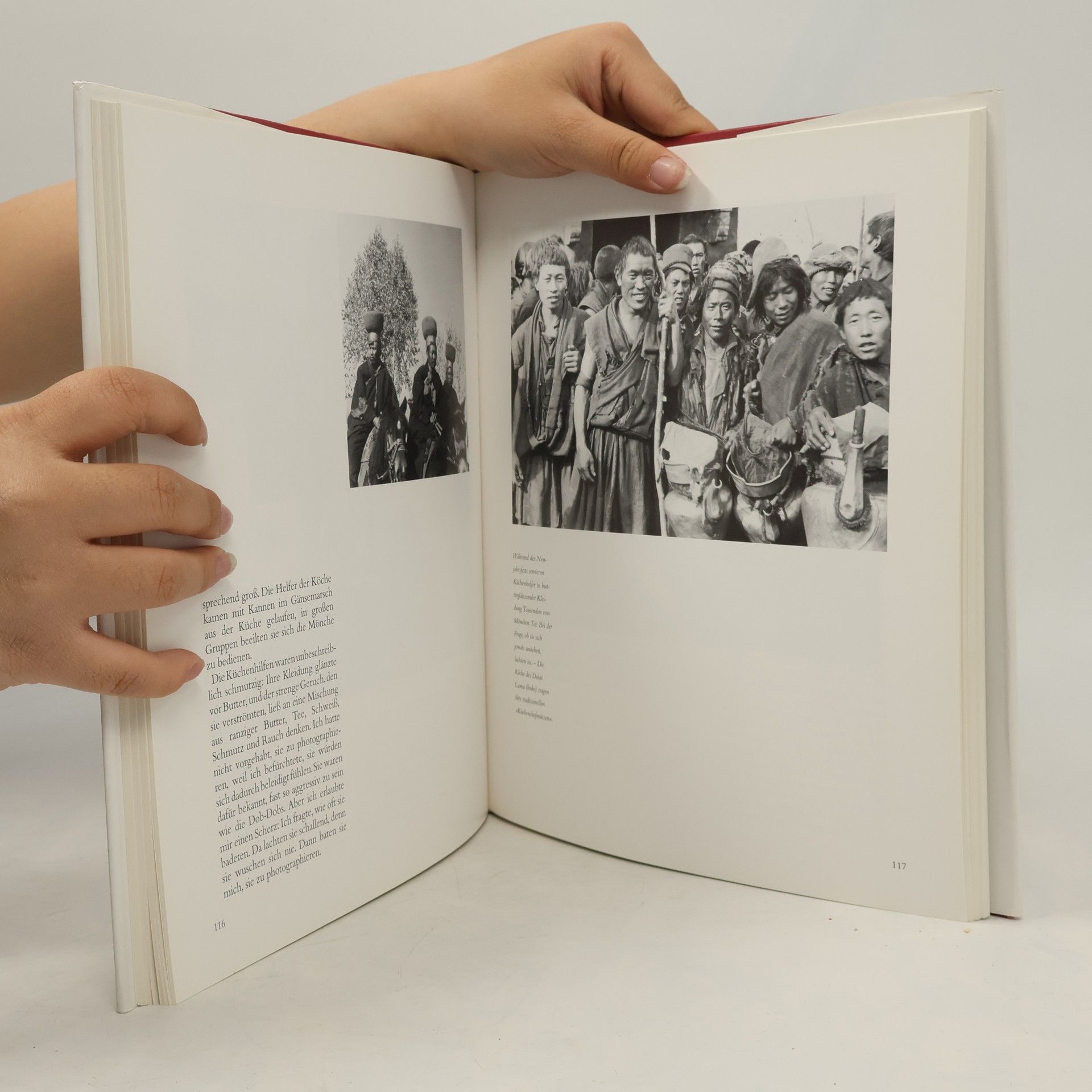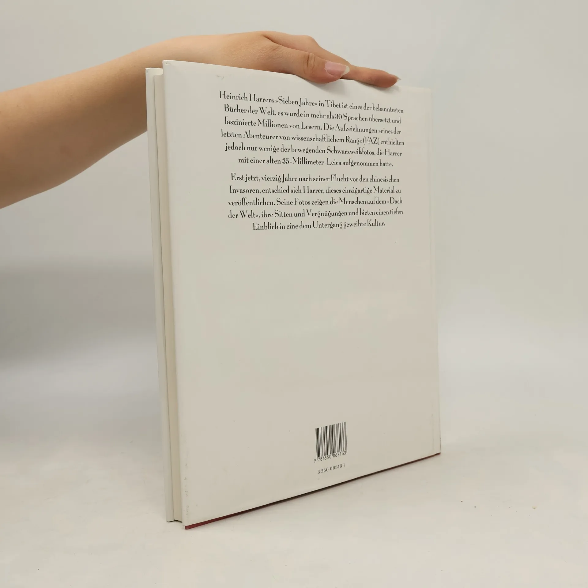 „Vierzig Jahre nach seiner Flucht vor den chinesischen Invasoren entschied sich Harrer, dieses einzigartige Bildmaterial zu veröffentlichen. Seine Fotos zeigen das Leben der Menschen auf dem “„Dach der Welt“„, ihre Sitten und Vergnügungen und geben einen tiefen Einblick in eine dem Untergang geweihte Kultur.“