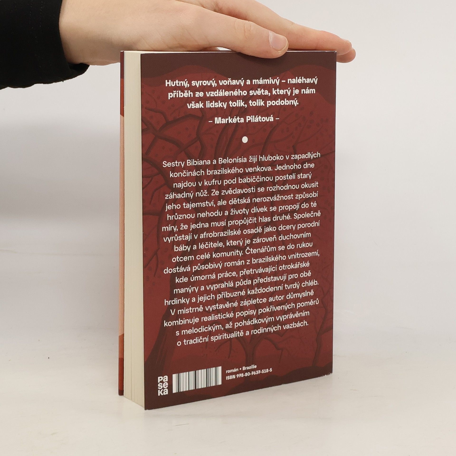 Hluboko v zapadlých končinách brazilského venkova vyrůstají sestry Bibiana a Belonísia, dcery porodní báby a léčitele, který je zároveň duchovním otcem místní afrobrazilské komunity. Jednoho dne najdou v kufru pod babiččinou postelí starý záhadný nůž. Dětská nerozvážnost způsobí hrůznou nehodu a životy dívek se propojí do té míry, že jedna musí propůjčit hlas druhé. Čtenářům se do rukou dostává působivý román z brazilského vnitrozemí, kde úmorná práce, přetrvávající otrokářské manýry a vyprahlá půda představují pro obě hrdinky a jejich příbuzné každodenní tvrdý chléb. V mistrně vystavěné zápletce autor důmyslně kombinuje realistické popisy pokřivených poměrů s melodickým až pohádkovým vyprávěním o tradiční spiritualitě a rodinných vazbách.
