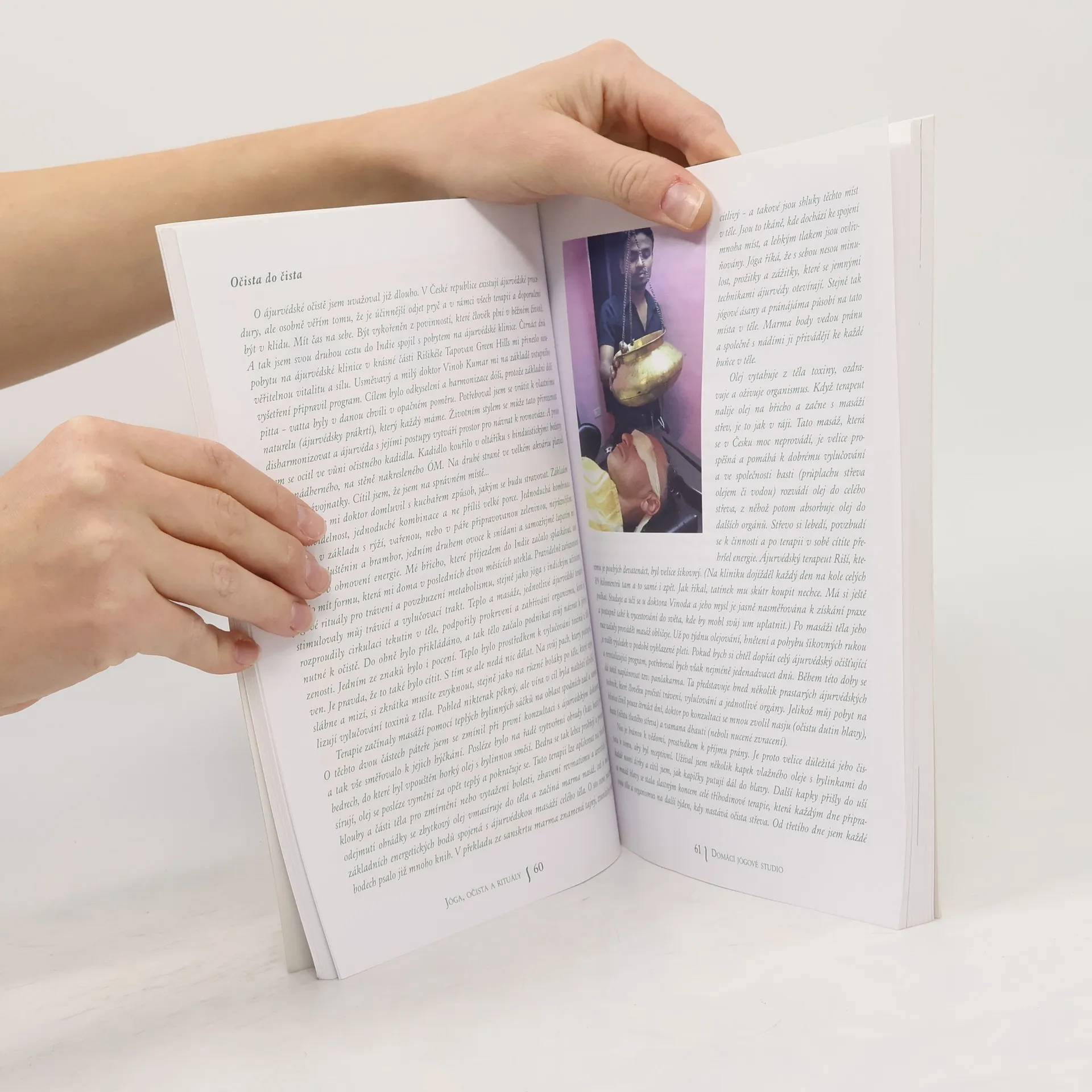 Podtitul: Domácí jógové studio. Ájurvéda, tradiční indický přístup ke zdraví, přinesla společně s jógou do mého života prostředky pro zdroj fyzické a mentální energie. V souladu s těmito přístupy se s vámi rád podělím o návod, jak být fit a v kondici a jak během relativně krátké doby dosáhnout očisty. Představím vám jednoduché sestavy jógových ásan, krije, práci s dechem, techniky pro správné trávení a vylučování či jógové a očistné rituály pro každý den. Kombinací pohybu, vhodné stravy a očistných technik si vytvoříte program, který můžete jednoduše praktikovat v domácím prostředí. Kniha je protkána příběhy očisty těla, mysli a vědomí z indického prostředí, a přinese vám tak ucelený pohled na jógovou spiritualitu.