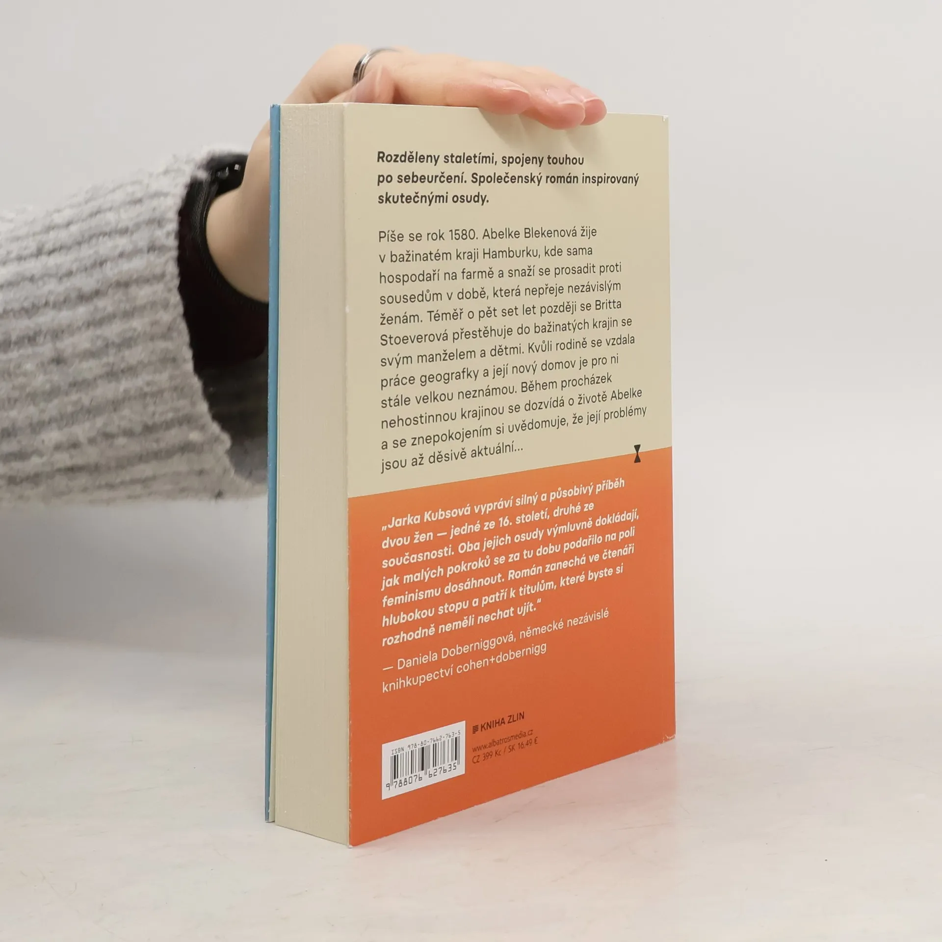 Rozděleny staletími, spojeny touhou po sebeurčení. Společenský román inspirovaný skutečnými osudy. Píše se rok 1580. Abelke Blekenová žije v bažinatém kraji Hamburku, kde sama hospodaří na farmě a snaží se prosadit proti sousedům v době, která nepřeje nezávislým ženám. Téměř o pět set let později se Britta Stoeverová přestěhuje do bažinatých krajin se svým manželem a dětmi. Kvůli rodině se vzdala práce geografky a její nový domov je pro ni stále velkou neznámou. Během procházek nehostinnou krajinou se dozvídá o životě Abelke a se znepokojením si uvědomuje, že její problémy jsou až děsivě aktuální… „Jarka Kubsová vypráví zuřivý a strhující příběh o dvou ženách, z nichž jedna žila kolem roku 1580 a druhá v současnosti, přičemž oba osudy jsou nádhernou ukázkou toho, jak malé byly dosavadní vývojové kroky ve feminismu. Tento román rezonuje a je tím nejlepším čtením.“