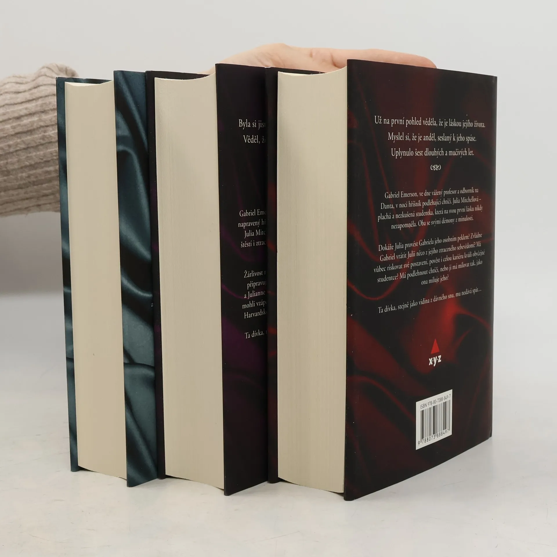 Všechny tři díly jedné z nejoblíbenějších erotických trilogií - Gabrielůovo Inferno, Gabrielův Očistec a Gabrielův Ráj v dárkovém boxu. Temný, smyslný, strhující a lechtivý příběh váženého profesora Gabriela a plaché studentky Julie. Vážený profesor Gabriel Emerson a plachá studentka Julie vás zavedou na území zákazné lásky. V trilogii Gabriel spolu milenci projdou Peklem i Očistcem… Čeká na ně na konci příběhu vytoužený Ráj? Profesor Gabriel Emerson je ve dne uznávaným specialistou na Danta, v noci se zmení na šelmu zmítanou erotickými touhami a téměř zvířecími pudy. Aby dostal vše, co chce, využívá svého neuvěřitelného šarmu a skvělého vzhledu, pod kterým se ovšem skrývá temná minulost a prázdnota. Pak se v jeho životě objeví studentka Julia a s ní i svádění, zakázaná láska a možná i vykoupení z Gabrielova osobního pekla…