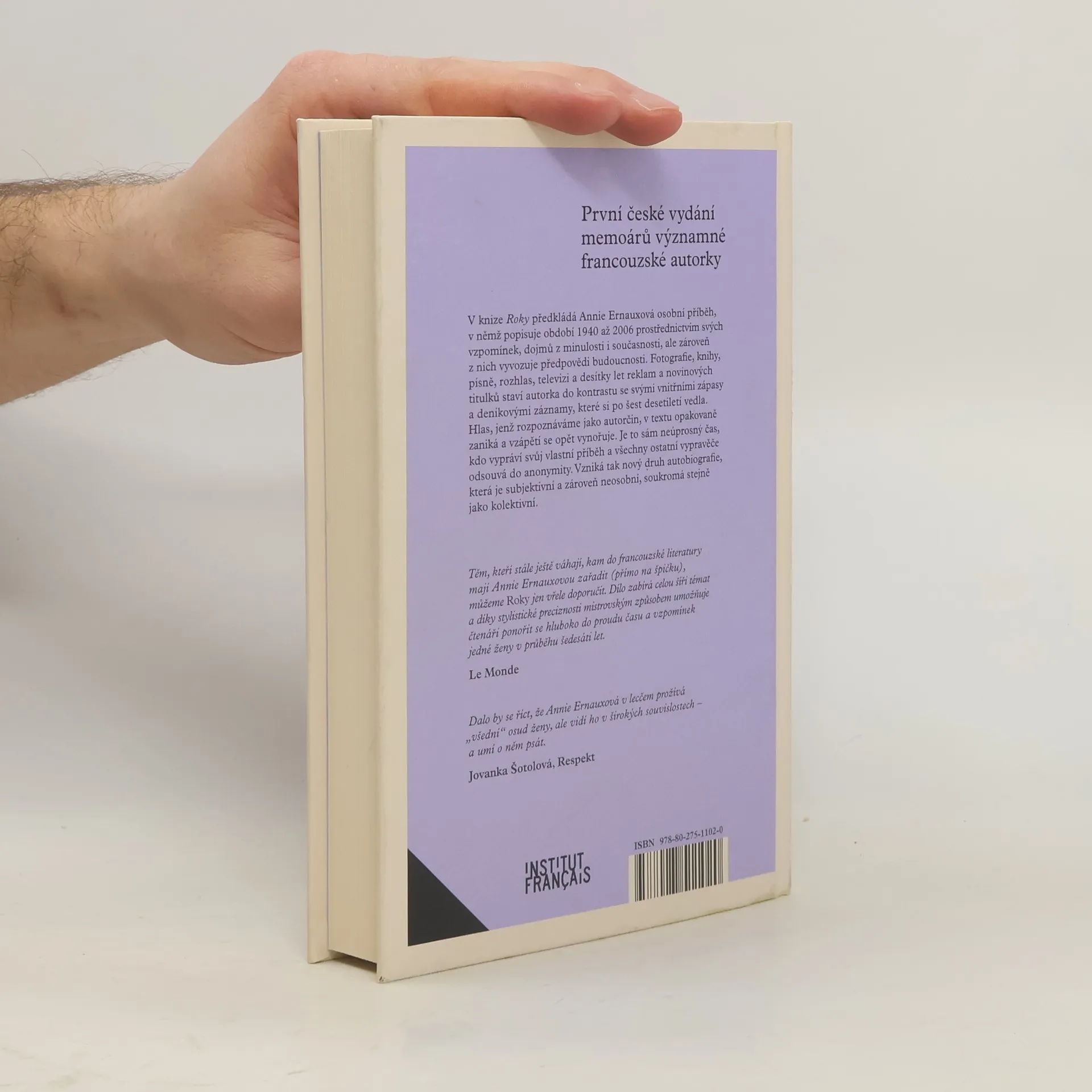 První české vydání memoárů významné francouzské autorky V knize Roky předkládá Annie Ernauxová osobní příběh, v němž popisuje léta 1940 až 2006 prostřednictvím svých vzpomínek, dojmů z minulosti i současnosti, ale zároveň z nich vyvozuje předpovědi budoucnosti. Fotografie, knihy, písně, rozhlas, televizi a desítky let reklam a novinových titulků staví autorka do kontrastu se svými vnitřními zápasy a deníkovými záznamy, které si po šest desetiletí vedla. Hlas, který rozpoznáváme jako autorčin, v textu opakovaně zaniká a vzápětí se opět vynořuje. Je to sám neúprosný čas, jenž vypráví svůj vlastní příběh a všechny ostatní vypravěče odsouvá do anonymity. Vzniká tak nový druh autobiografie, která je subjektivní a zároveň neosobní, soukromá stejně jako kolektivní.