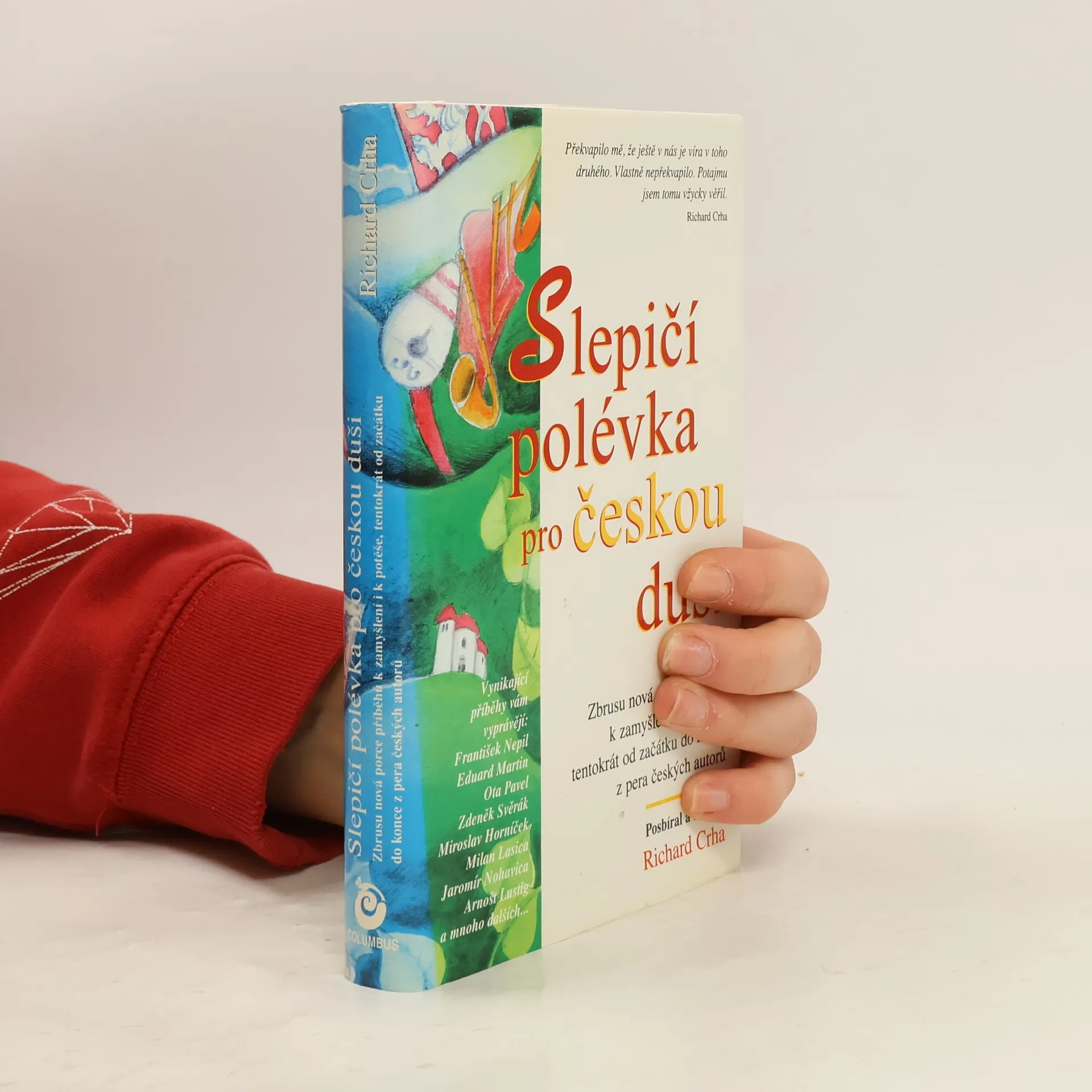 Veskrze pozitivní přístup k životu je společným rysem dojemných, úsměvných i slitovných, především ale hluboce lidských příběhů, které jsme pro své čtenáře shromáždili v této české variantě Slepičí polévky, to je sbírce příběhů, které nám na vyzvání zasílají čeští autoři, významní představitelé našeho kulturního a politického života i zcela obyčejní občané této země. Z nich jsme vybrali a sestavili tuto knihu, jež má být vzpruhou pro duši, obkladem na rozpálené čelo i rukou, podávající voňavý, mateřídouškový či heřmánkový čaj zesláblému dítěti. Výběru a shromažďování povídek věnuje nemalou péči odborník na slovo vzatý, profesionální novinář a v letech 1994-1995 šéfredaktor týdeníku Mladý svět Richard Crha, k jehož rukám se všechny praménky s prózou lidovou i uměleckou pomalu ale jistě stékaly...