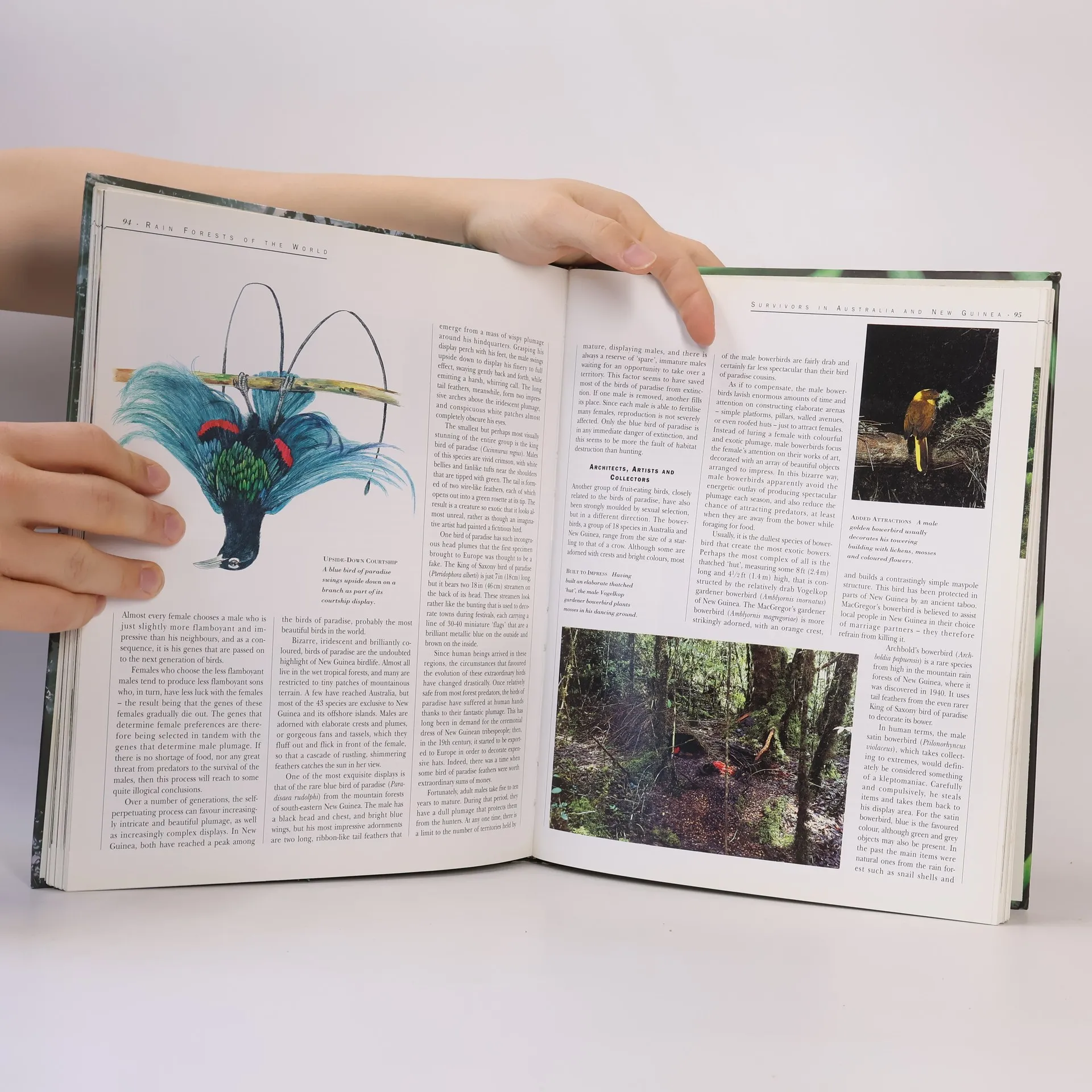 Describes the unique environment of and the varied animal and plant life found in the world's tropical rain forests.