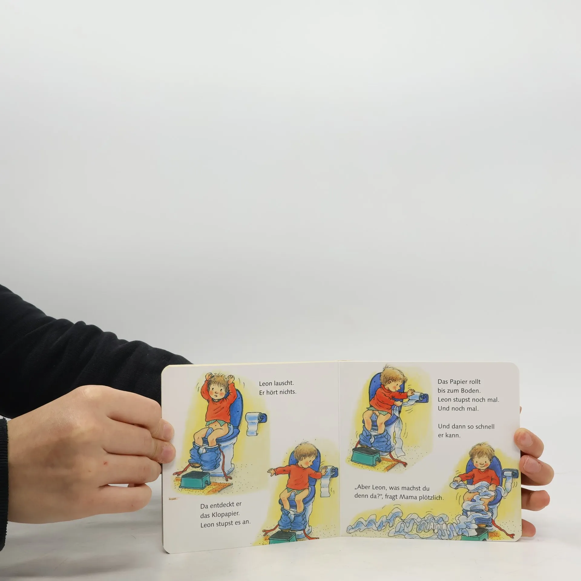 Auf seinem Klositz fühlt sich Leon wie auf einem Thron, aber es ist schon ein wenig langweilig. Doch Leon weiß sich zu helfen! Und dann muss er auch endlich Pipi machen