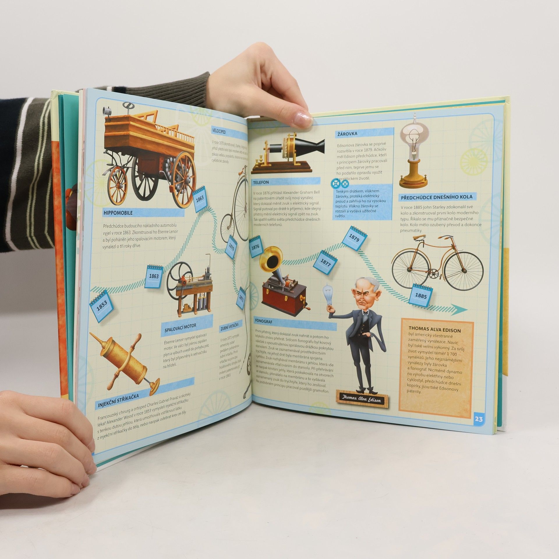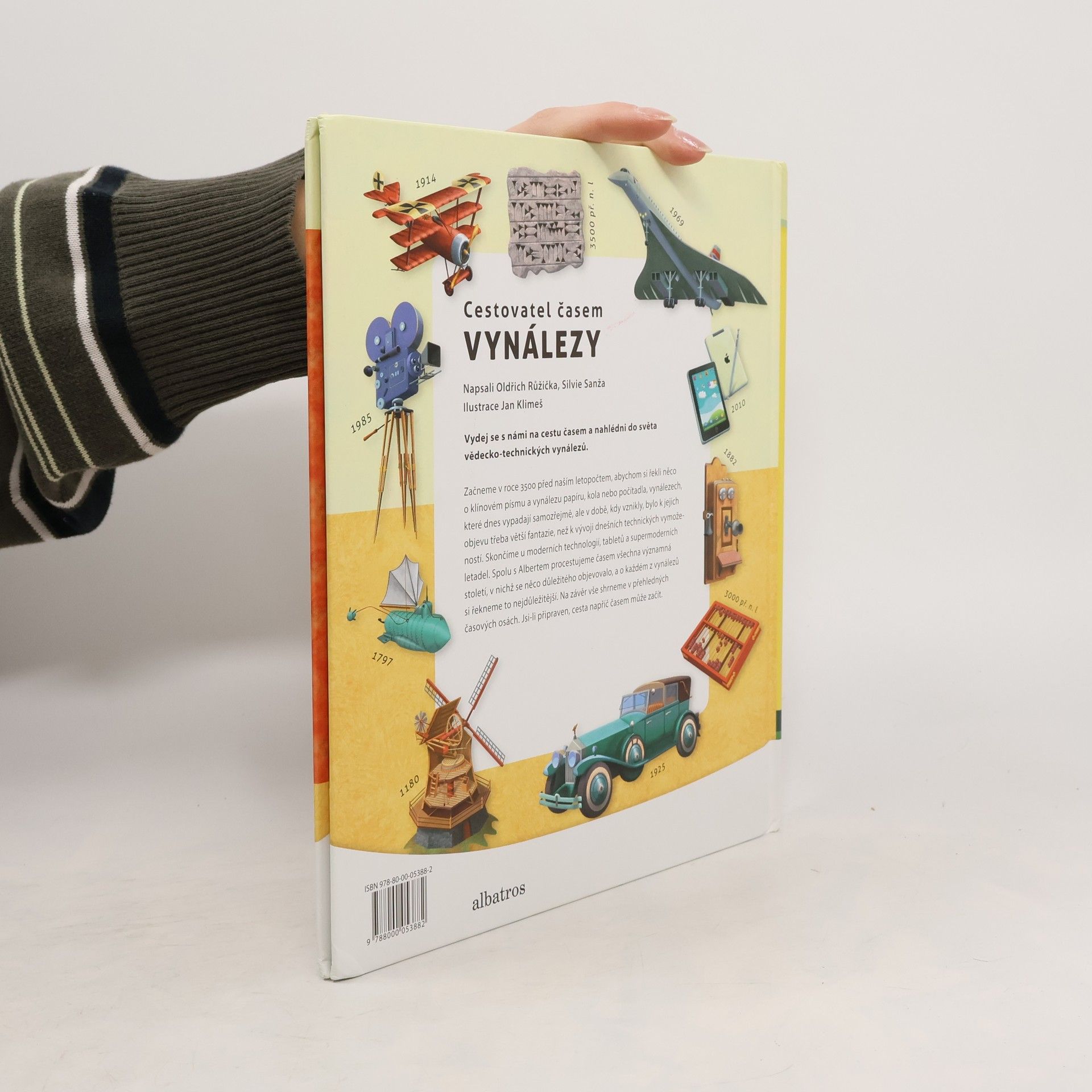 Začneme v roce 3500 před naším letopočtem, abychom si řekli něco o klínovém písmu a vynálezu papíru, kola nebo počítadla. Vynálezů, které dnes vypadají samozřejmě, ale v době, kdy vznikly, bylo k jejich objevu třeba větší fantazie, než k vývoji dnešních technických vymožeností. Skončíme u moderních technologií, tabletů a supermoderních letadel. Spolu s Albertem procestujeme časem všechna významná století, v nichž se něco důležitého vynalézalo a o každém vynálezů si řekneme to nejdůležitější.