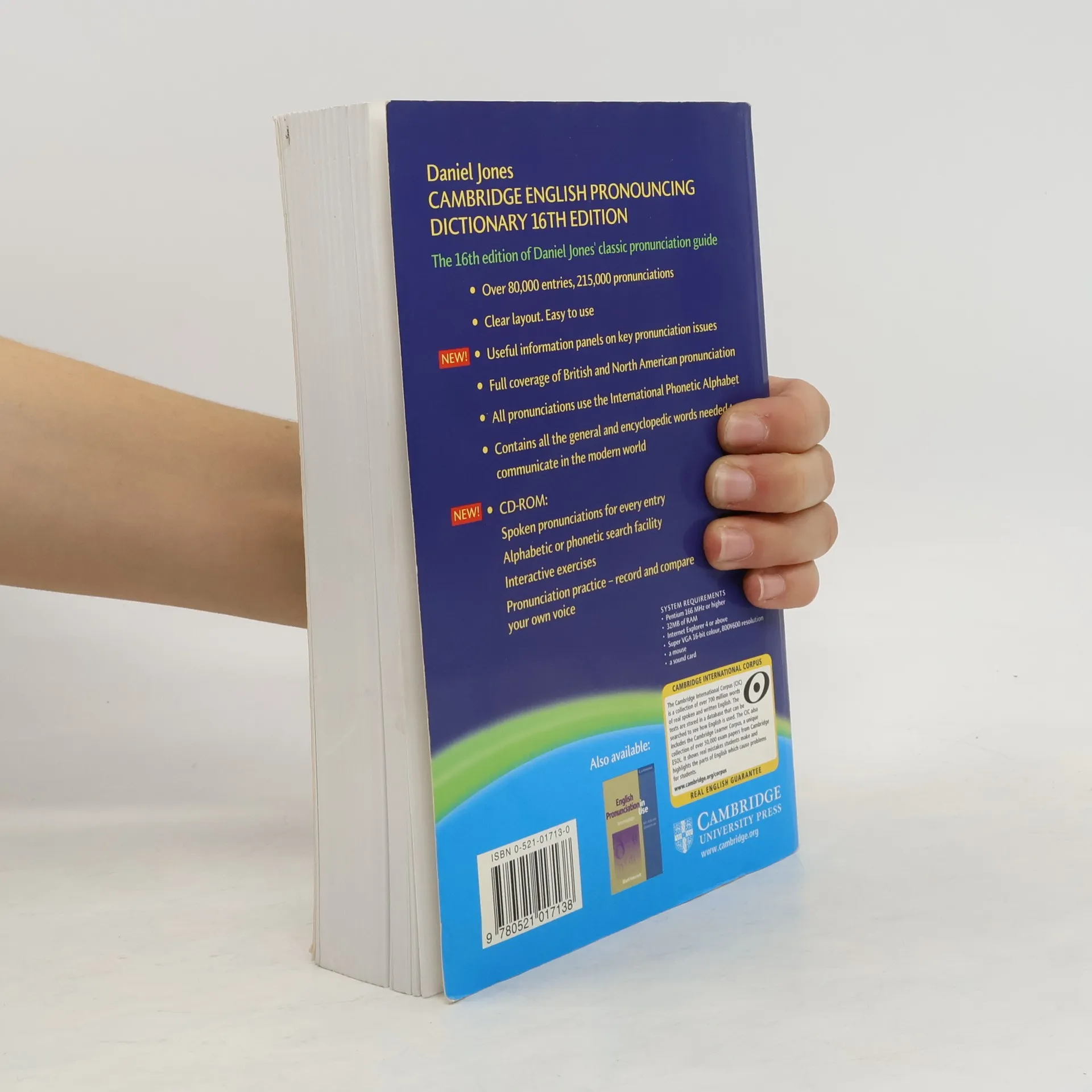 With more than 80,000 entries and 220,000 pronunciations, Cambridge English Pronouncing Dictionary is the ultimate guide to English pronunciation. Thousands of pronunciations not shown in general dictionaries are included, from people and places, to words from science, technology and literature, such as Beckham, Eminem, Google, Prozac. Please see the new 17th edition for a Vista-compatible version