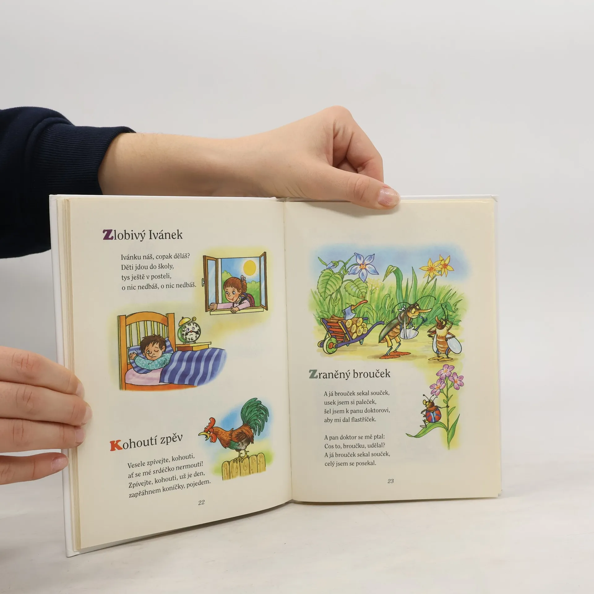 Známé říkanky pro děti, které vybrala a sestavila Zdenka Talpová. Obsah: Kolo kolo mlýnský, Bosý Pavel, Husopaska, Bukové rozpočítadlo, Kalamajka, Koťátka, Můžeme si hrát, Kuličky, Mlýnek na potoce, O Janečkovi, O lišce, Polámaná koza, Povidla, Sázení stromů, Skoč panno do vody, Slunečné usínání, Sluníčko, Toníčkova, Sněhuláci, Špity špity, Zlobivý Ivánek, Kohoutí zpěv, Zraněný brouček, Vrabčí svatba, Vraní krákání, Ranní svítání, Kdes kukačko kde jsi byla, Žabí bolení, Žabka uličnice, Žabí klouzačka.