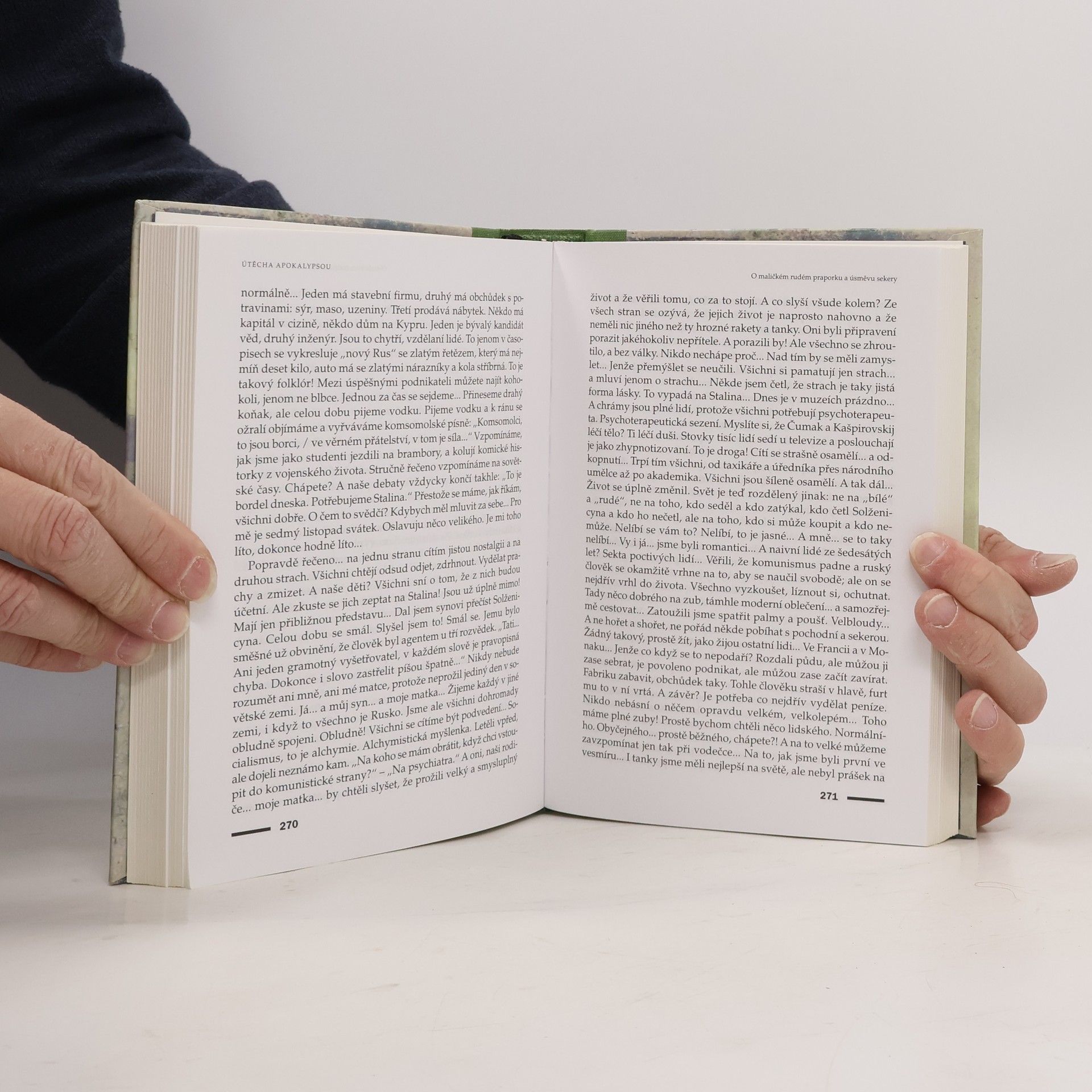 Doba z druhé ruky je výjimečná kniha autorky, laureátky prestižních literárních cen. Konec komunistického režimu a rozpad sovětského impéria přinesly občanům zklamání a dezorientaci. Text je mozaikou hlasů, které Alexijevičová zaznamenala při rozhovorech s různými lidmi, jež vyprávějí o svých vírách v sovětský systém, o zabíjení a umírání pro jeho ideu, o hrůzách komunismu, gulagu, válkách a Černobylu. Čtenář se setkává s rozmanitými osudy a názory, z nichž vyvstávají společná traumata a obsese. Hrdinové považují srpen 1991, kdy statisíce Rusů vyšlo do ulic Moskvy, za vrchol svobodného vzepětí společnosti, avšak následovalo vystřízlivění. Kapitalismus si lidé představovali jako velký supermarket, ale probudili se v zemi třetího světa, plné anarchie, inflace, zločinnosti a korupce. Kniha nabízí hlubokou sondu do ruské společnosti a pomáhá porozumět jejímu současnému vývoji. Nutí čtenáře zamyslet se nad tím, co je Rusko a proč se oblíbenost autokrata Putina pohybuje kolem 85 %. Alexijevičová, jejíž díla byla přeložena do 22 jazyků a oceněna mnoha cenami, včetně Nobelovy ceny za literaturu, zkoumá, proč je velkoruský šovinismus stále živý a militantnější.