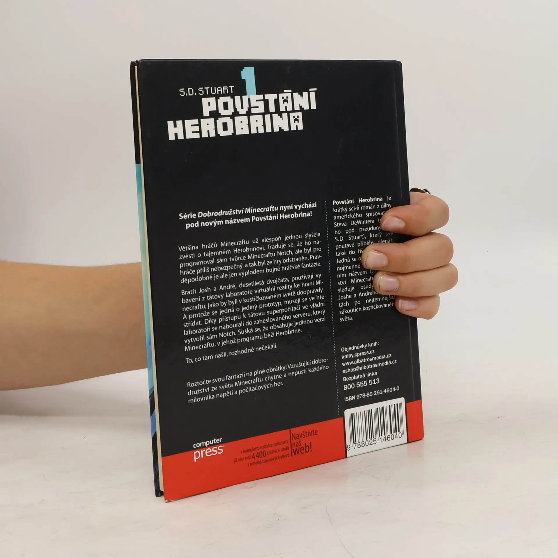 Většina hráčů Minecraftu už alespoň jednou slyšela zvěsti o tajemném Herobrinovi. Traduje se, že ho naprogramoval sám tvůrce Minecraftu Notch, ale byl pro hráče příliš nebezpečný, a tak byl ze hry odstraněn. Pravděpodobně je ale jen výplodem bujné hráčské fantazie. Bratři Josh a André, desetiletá dvojčata, používají vybavení z tátovy laboratoře virtuální reality ke hraní Minecraftu, jako by byli v kostičkovaném světě doopravdy. A protože se jedná o jediný prototyp, musejí se ve hře střídat. Díky přístupu k tátovu superpočítači ve vládní laboratoři se nabourali do zaheslovaného serveru, který vytvořil sám Notch. Šušká se, že obsahuje jedinou verzi Minecraftu, v jehož programu běží Herobrine. To, co tam našli, rozhodně nečekali. Roztočte svou fantazii na plné obrátky! Vzrušující dobrodružství ze světa Minecraftu chytne a nepustí každého milovníka napětí a počítačových her. Povstání Herobrina je krátký sci-fi román z dílny amerického spisovatele Steva DeWintera (píšícího pod pseudonymem S.D. Stuart), který své poutavé příběhy přenáší i do říše Minecraftu. Jedná se o první díl série Dobrodružství Minecraftu, která sleduje osudy dvojčat Joshe a Andrého na cestách po nejtemnějších zákoutích kostičkovaného světa.