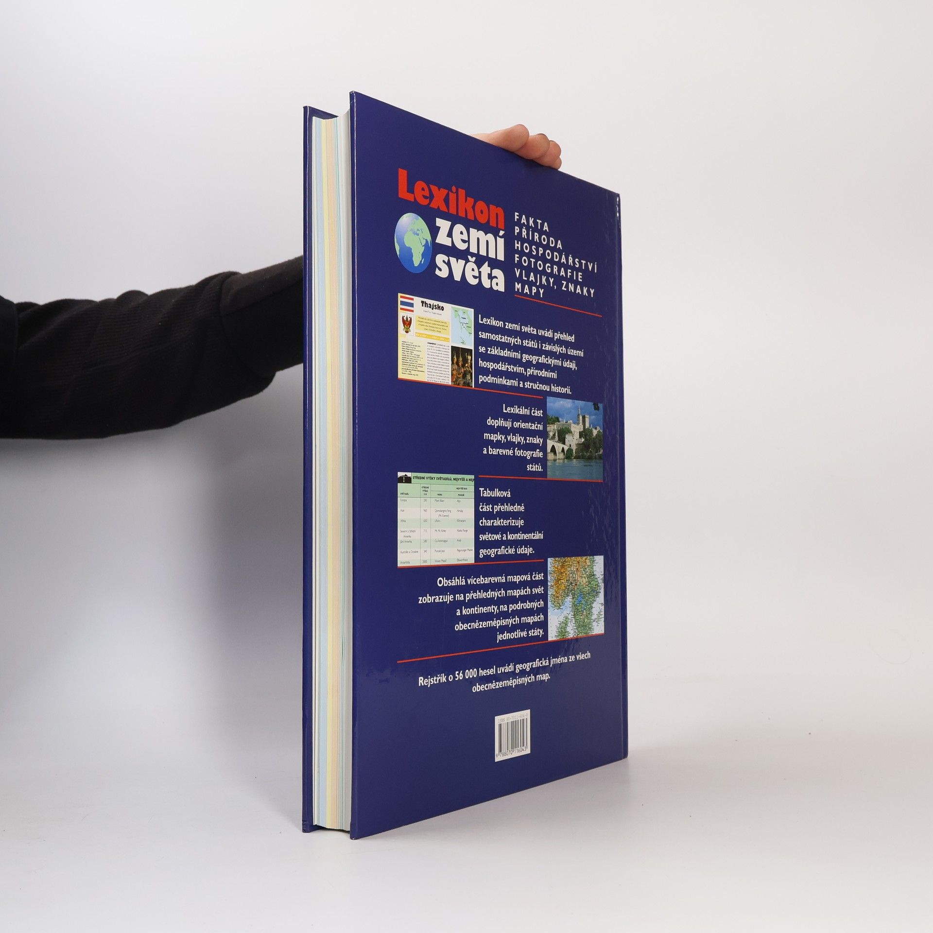 Lexikon zemí světa uvádí na 205 stranách přehled samostatných států i závislých území se základními geografickými údaji, hospodářstvím, přírodními podmínkami a stručnou historií. Textovou část doplňují orientační mapky, vlajky a znaky. Silnou stránkou díla je množství poutavých kvalitních fotografií od nejuznávanějších českých fotografů. Obsáhlá vícebarevná mapová část (celkem 78 stran map) zobrazuje na přehledných mapách svět a kontinenty, na podrobných obecně-zeměpisných mapách jednotlivé státy (s novým názvoslovím v nezávislých státech vzniklých po r. 1991). Mapám předchází tabulková část, která přehledně charakterizuje světové a kontinentální geografické údaje. Rejstřík, který obsahuje 56 000 hesel, uvádí geografická jména ze všech obecně-zeměpisných map. 1. vydání, 2. dotisk