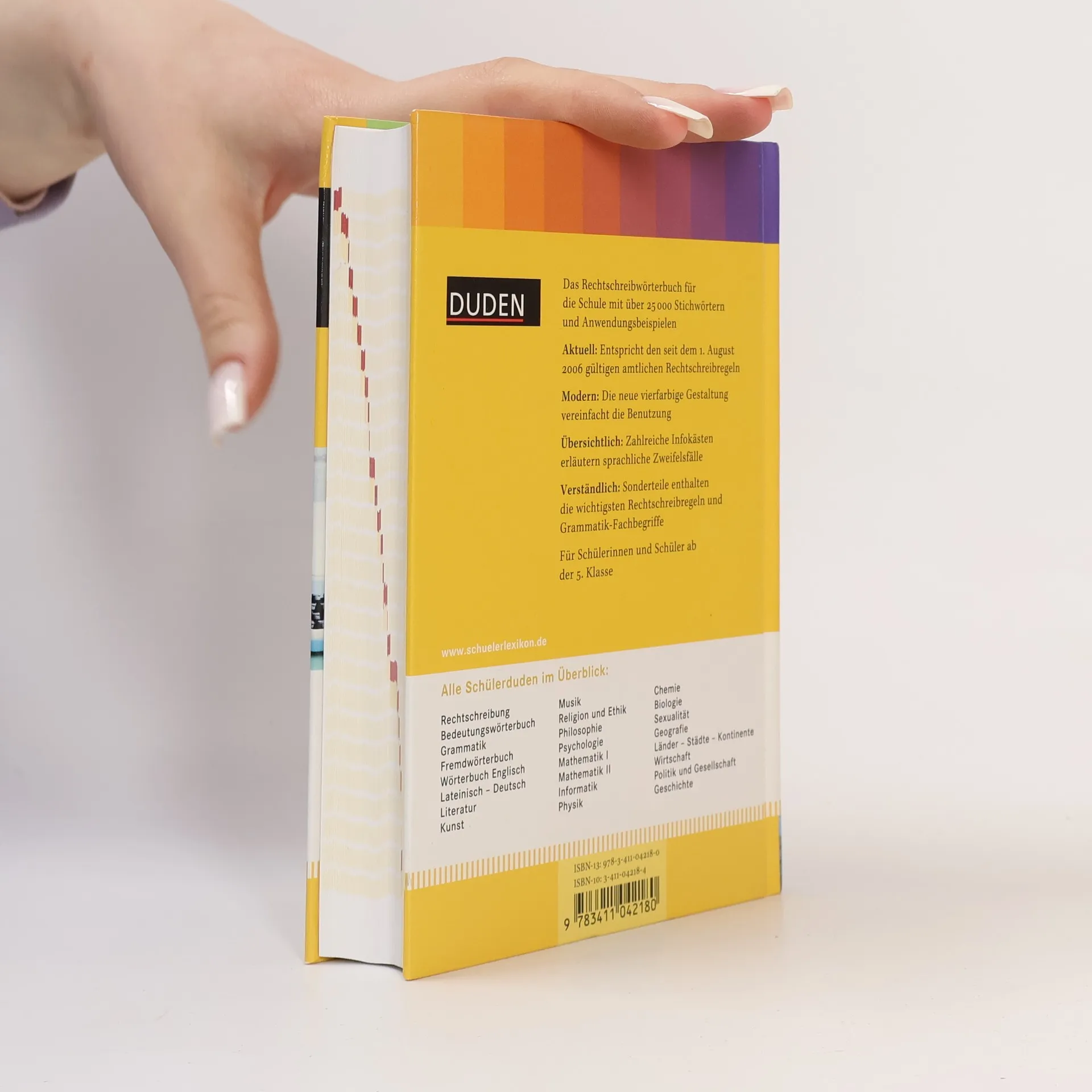 Das über den Schulgebrauch hinaus bewährte Standardwerk liegt in 8., aktualisierter Auflage vor. Es enthält mehr als 25.000 Stichwörter in der seit 2006 verbindlichen Rechtschreibung und bietet außerdem Angaben zur Worttrennung, Aussprache, Formenbildung und Bedeutung. Die Regeln der deutschen Orthografie sind in leicht verständlicher, schülergerechter Form zusammengestellt und anhand vieler Beispiele verdeutlicht.