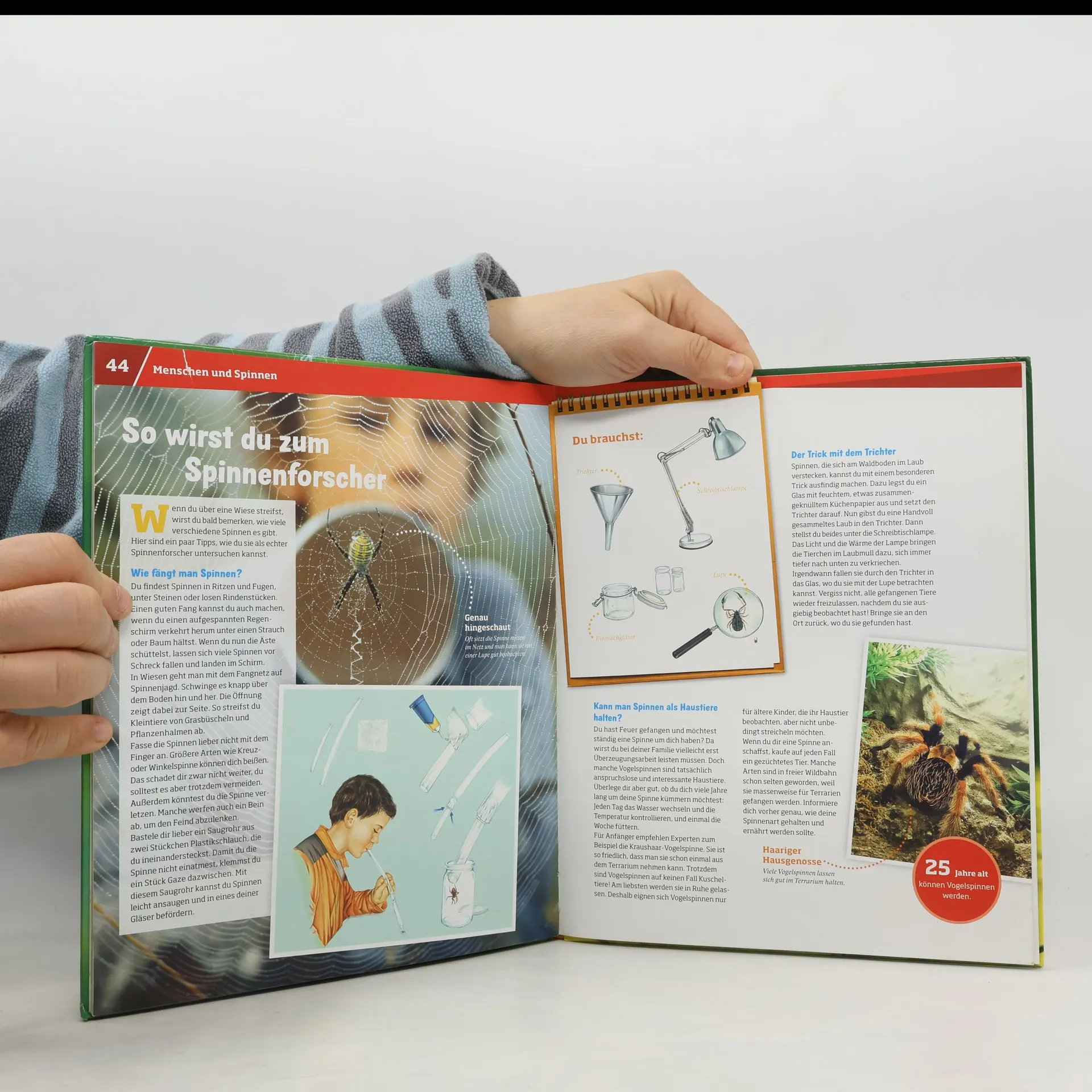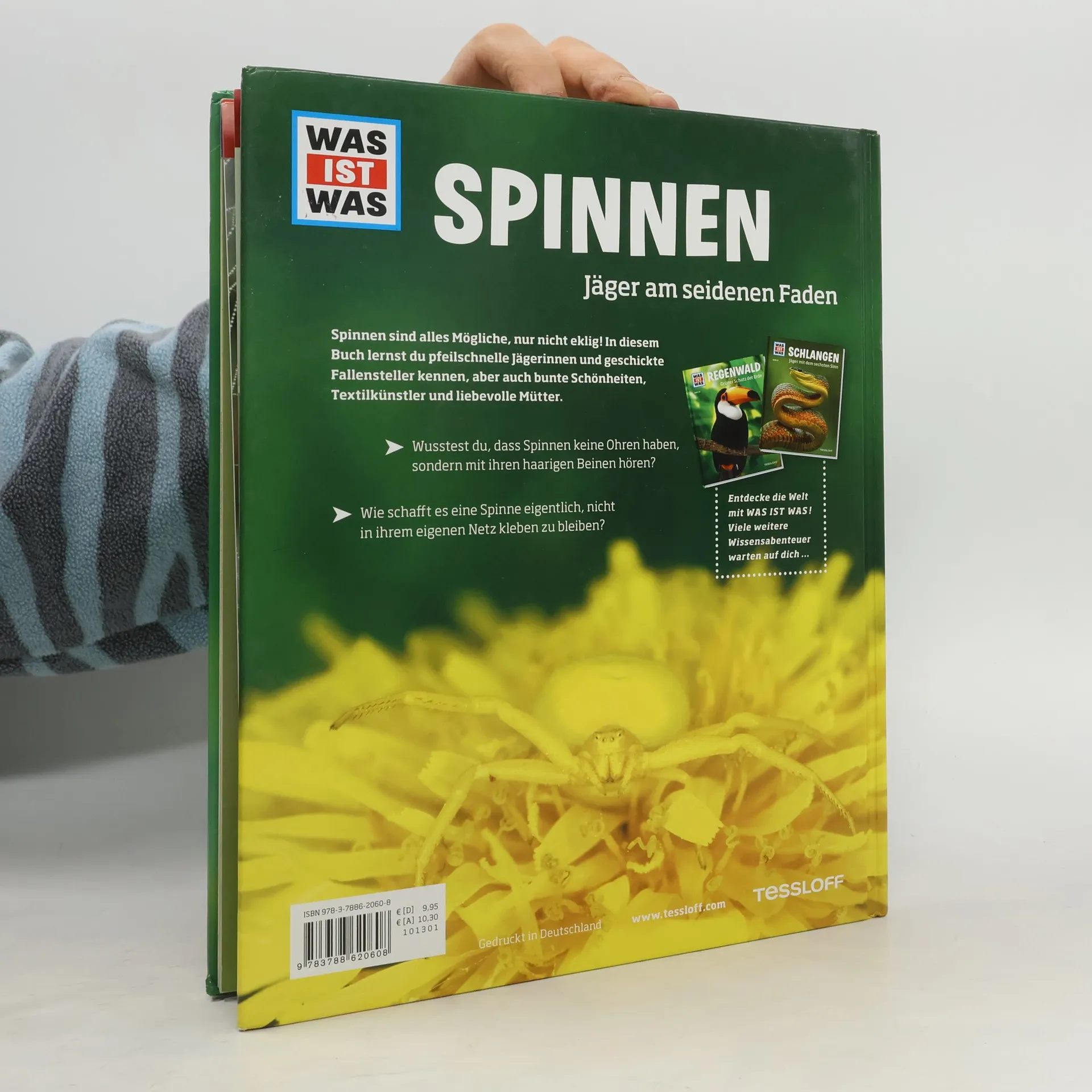 Spinnen sind Überlebenskünstler - älter als die Dinosaurier! Man findet sie in heißen Wüsten und auf Berggipfeln, in staubigen Zimmerecken, in absolut finsteren Höhlen und natürlich im Regenwald. An alle Lebensräume haben sie sich perfekt angepasst. WAS IST WAS interviewt einen Biologen, stellt verschiedene Spinnenarten und ihre Verwandten vor, beschreibt ihre Besonderheiten und Tricks. Wie giftig sind Spinnen? Wie flirten sie? Sind Spinnen gute Mütter? Und was hat es mit der Spinnenangst auf sich? Highlights des Sachbuchs: die Galerie der Spinnenkunst, das Interview mit einer Schwarzen Witwe und Tipps für angehende Spinnenforscher. Nicht zu vergessen die Vielzahl von Funny Facts, die beispielweise mit Neffi, der Weltraum-Spinne, bekannt machen.