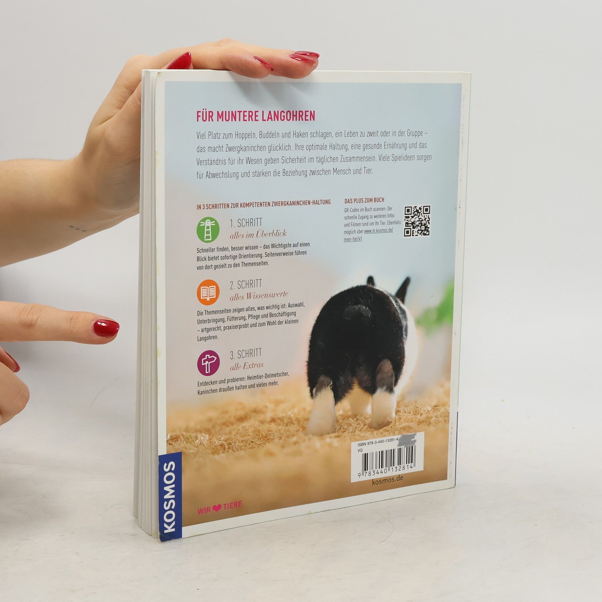 Viel Platz zum Hoppeln, Buddeln und Haken schlagen, ein Leben zu zweit oder in der Gruppe – das macht Zwergkaninchen glücklich. Ihre optimale Haltung, eine gesunde Ernährung und das Verständnis für ihr Wesen geben Sicherheit im täglichen Zusammensein. Viele Spielideen sorgen für Abwechslung und stärken die Beziehung zwischen Mensch und Tier. Das Plus zum Buch: weitere Infos und Filme rund um Ihr Zwergkaninchen sind online einfach und schnell aufrufbar über QR-Codes im Buch.