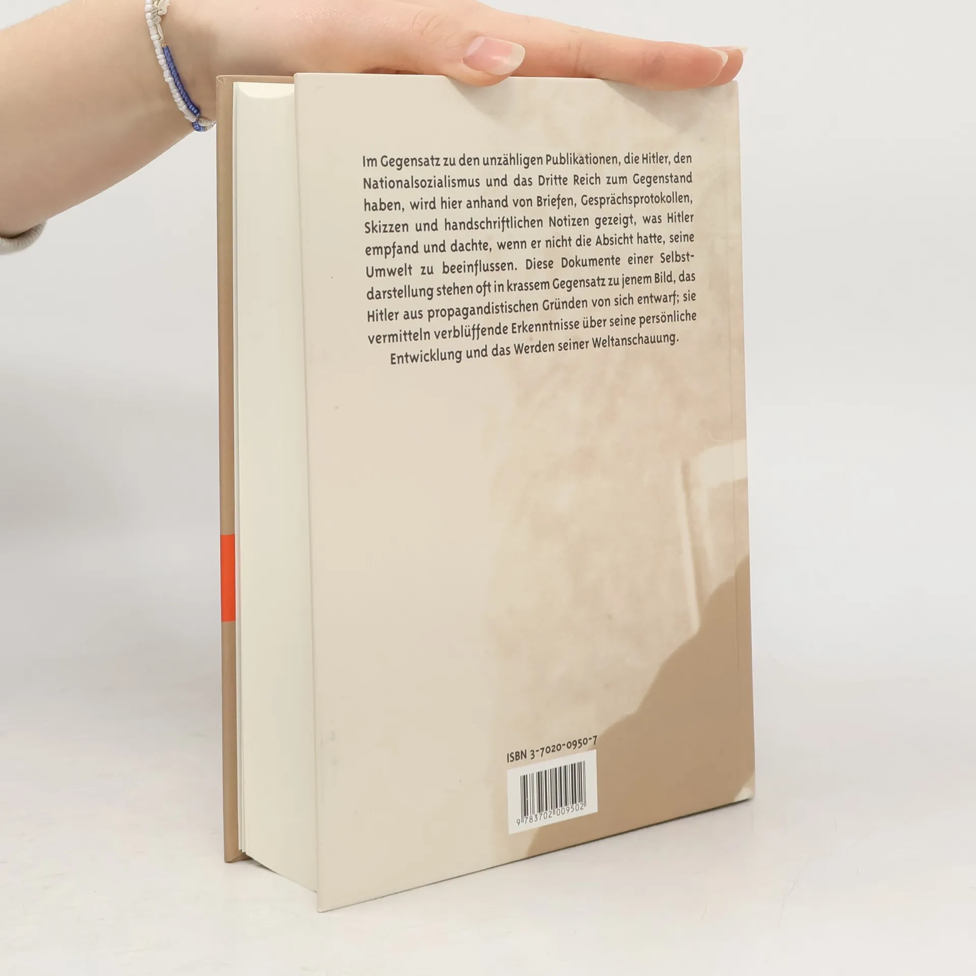 Der berühmte Hitler-Biograph Werner Maser stellt in diesem Werk weit über 100 handschriftliche Dokumente Adolf Hitlers vor und analysiert sie im Hinblick auf dessen Denken. Briefe und Postkarten persönlichen und offiziellen Inhalts; Notizen und Manuskripte teils aus früher Zeit, noch vor dem Beginn des politischen Engagements, die die Entwicklung von Hitlers Antisemitismus dokumentieren; Zeichnungen, Pläne und Architekturskizzen sowie Hitlers Testamente aus verschiedenen Jahren ermöglichen einen tiefen Blick in die Psyche des Diktators. Die hier gebrachten Dokumente würden, wie „Die Zeit“ schrieb, die „pseudowissenschaftliche, individuelle Psychologie“ vieler Hitler-Biographen zunichte machen. Zahlreiche Fotos runden den Band ab und zeigen, die handschriftlichen Dokumente widerspiegelnd, die Entwicklung von Hitlers Physiognomie und Habitus im Verlauf seines Lebens.