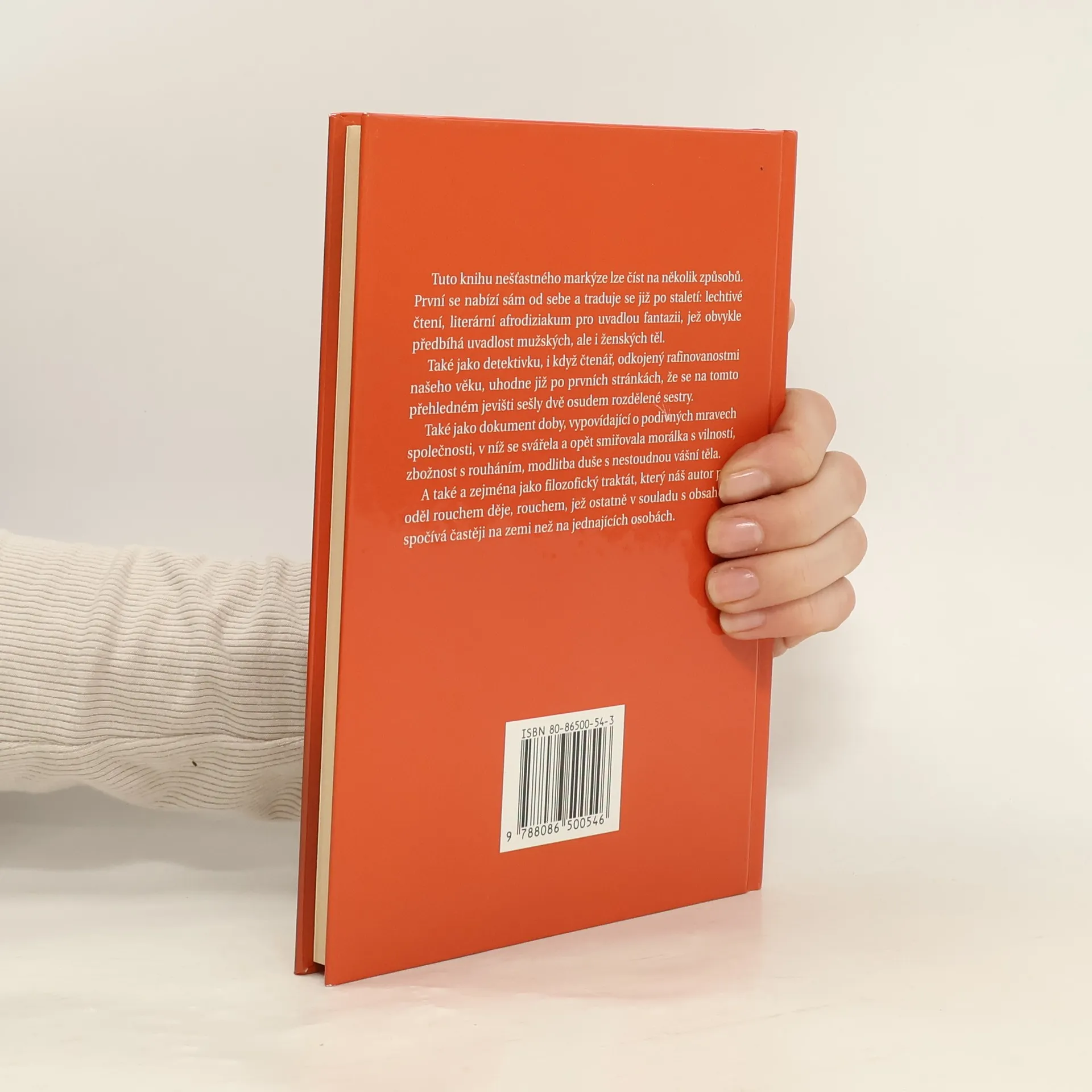 Tuto knihu nešťastného markýze lze číst na několik způsobů. První se nabízí sám od sebe a traduje se již po staletí: lechtivé čtení, literární afrodiziakum pro uvadlou fantazii, jež obvykle předbíhá uvadlost mužskcých i ženských těl. Také jako detektivku, i když čtenář, odkojený rafinovanostmi našeho věku, uhodne již po prvních stránkách, že se na tomto přehledném jevišti sešly dvě osudem rozdělené sestry. Také jako dokument doby, vypovídající o podivných mravech společnosti, v níž se svářela a opět smiřovala morálka s vilností, zbožnost s rouháním, modlitba duše s nestoudnou vášní vášní těla. A také a zejména jako filozofický traktát, který náš autor přioděl rouchem děje, rouchem, jež ostatně v souladu s obsahem spočívá častěji na zemi naž na jednajících osobách.