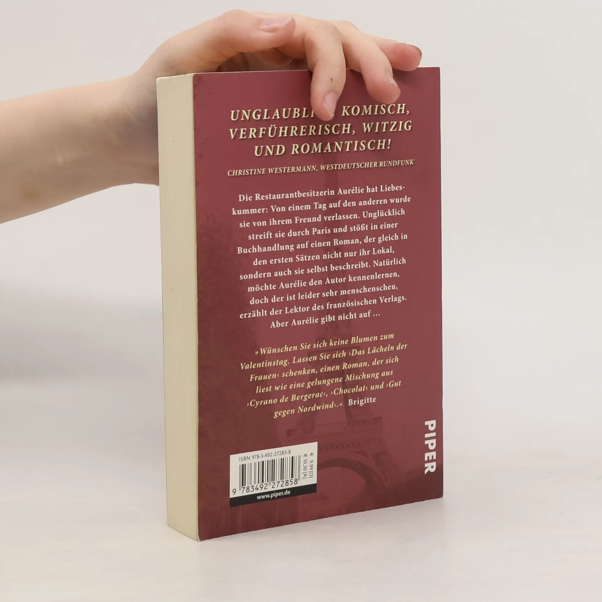 Die junge Restaurantbesitzerin Aurélie hat Liebeskummer: Von einem Tag auf den anderen wurde sie von ihrem Freund verlassen. Unglücklich streift sie durch Paris und stößt in einer kleinen Buchhandlung auf einen Roman, der gleich in den ersten Sätzen nicht nur ihr Lokal, sondern auch sie selbst beschreibt. Begeistert von der Lektüre, möchte Aurélie den Autor des Buchs kennenlernen, doch der ist leider sehr menschenscheu, erfährt sie vom Lektor des französischen Verlags. Aber Aurélie gibt nicht auf …