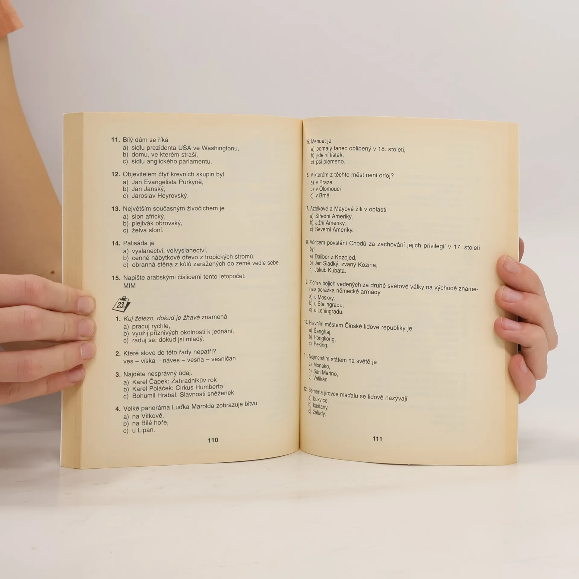 Publikace testovou formou prověřuje a doplňuje znalosti důležitých částí učiva společenskovědních předmětů a napomáhá tak ke kvalitní a úspěšné přípravě k přijímacím zkouškám na střední školy všech typů. Seznamuje žáky s testovou úlohou v dějepise, občanské výchově, literatuře, jak se s ní setkají u přijímacích zkoušek. Radí, kde potřebné znalosti získat, v závěru uvádí klíč správných řešení.