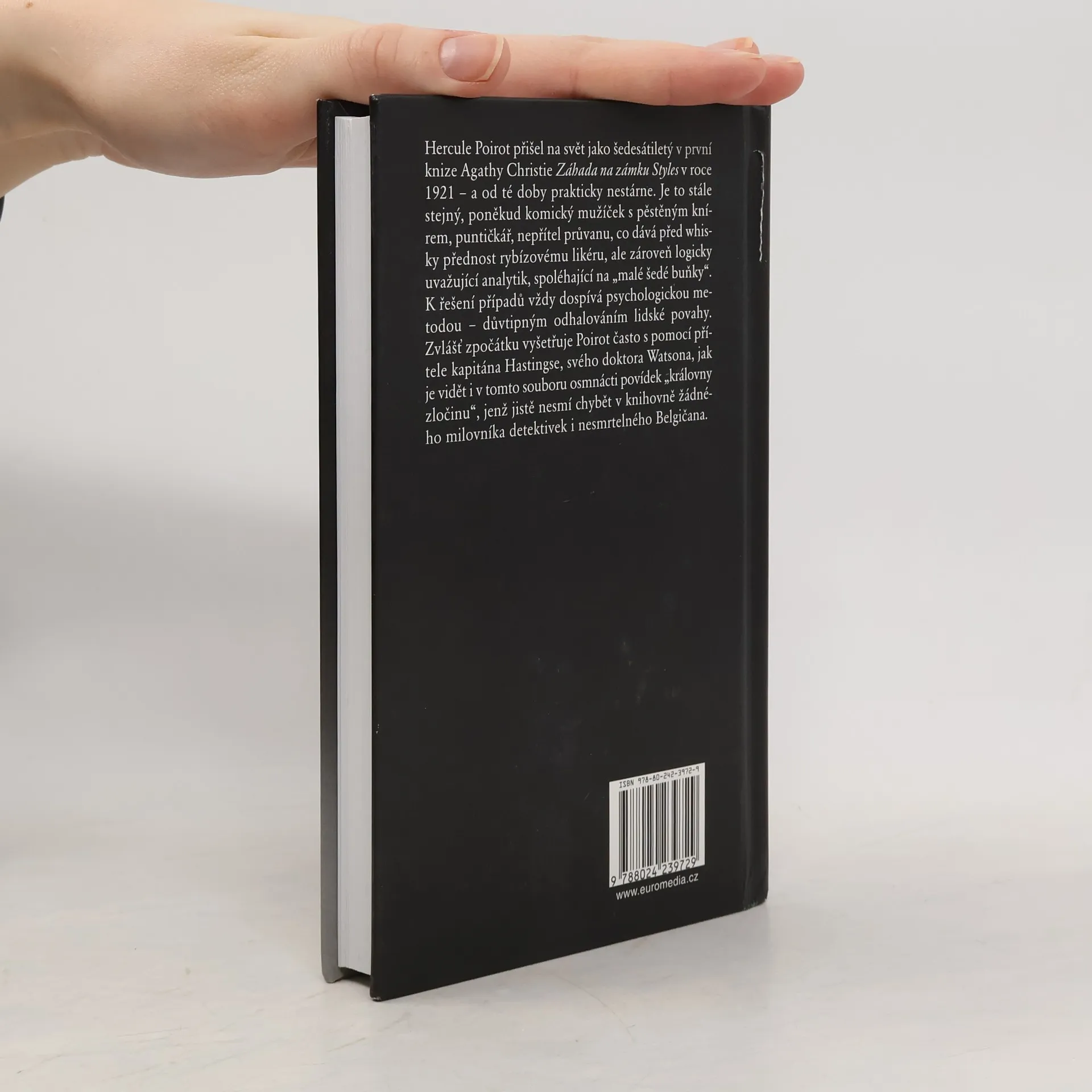 Osmnáct povídek „královny zločinu“ jistě uvítají všichni milovníci detektivek a nesmrtelného Hercula Poirota. Poirot přišel na svět jako šedesátiletý v první knize Agathy Christie Záhada na zámku Styles v roce 1921 – a od té doby prakticky nestárne. Je to stále stejný, poněkud komický mužíček s pěstěným knírem, puntičkář, nepřítel průvanu, co dává před whisky přednost rybízovému likéru, ale zároveň logicky uvažující analytik, spoléhající na „malé šedé buňky“. K řešení případů vždy dospívá psychologickou metodou – důvtipným odhalováním lidské povahy. Zvlášť zpočátku vyšetřuje Poirot často s pomocí přítele kapitána Hastingse, jenž je jeho doktorem Watsonem a tvoří vhodné pozadí pro genialitu slavného detektiva. S oběma muži se setkáme i v tomto souboru, který v ucelené podobě vychází česky poprvé.