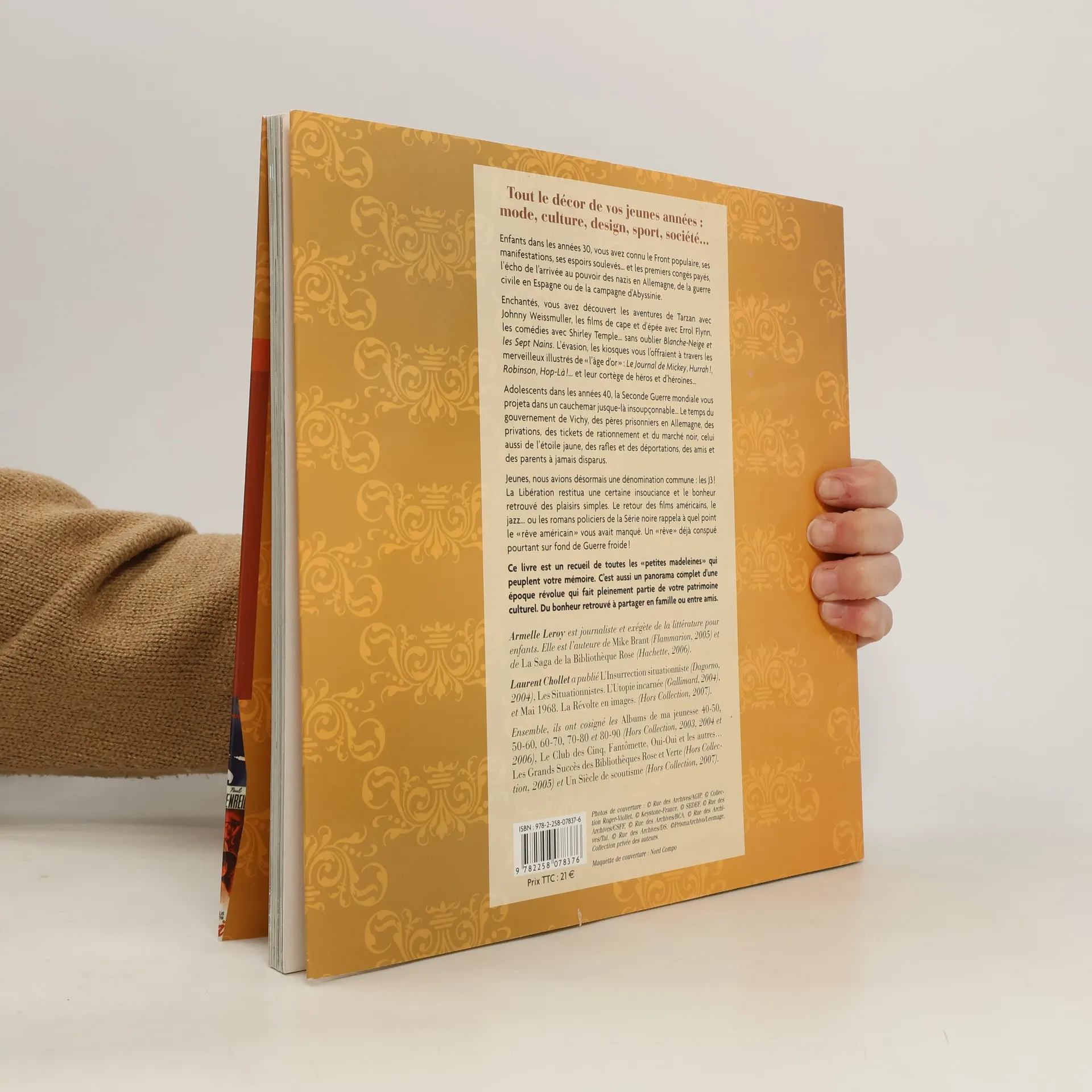 Enfant dans les années trente, vous ne vous êtes pas vraiment aperçu de la crise mondiale entourant le Jeudi Noir à Wall Street, ni de la montée du nazisme. En revanche, vous vous passionniez pour les aventures de Babar, le petit éléphant. Et rien de tel pour vous endormir le soir que les Contes du Chat Perché, de Marcel Aymé. Vos souvenirs sont faits d'images fortes mais aussi d'objets tels que la télévision ou la radio, qui en sont encore à leurs balbutiements. Adolescent dans les années 40, vous aimiez à vous faire peur en dévorant les premiers Agatha Christie. Casablanca, Le Troisième Homme, Pour qui sonne le glas, Hollywood vit son âge d'or et votre distraction favorite consiste à aller au cinéma, un moyen d'échapper un peu à un quotidien morose, parfois même sanglant, marqué par la seconde Guerre Mondiale, le régime de Vichy et le début de la guerre d'Indochine. Ce livre est un recueil de toutes ces "petites madeleines" qui peuplent votre mémoire. C'est aussi un panorama complet d'une époque révolue qui fait pleinement partie de notre patrimoine culturel. Du bonheur retrouvé à partager entre amis ou en famille.