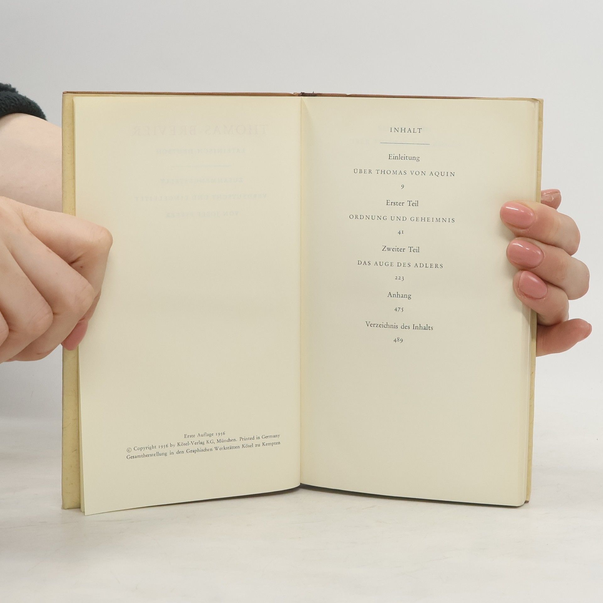 Zusammengestellt verdeutscht und Eingeleitet von Josef Pieper, Thoman Brevier