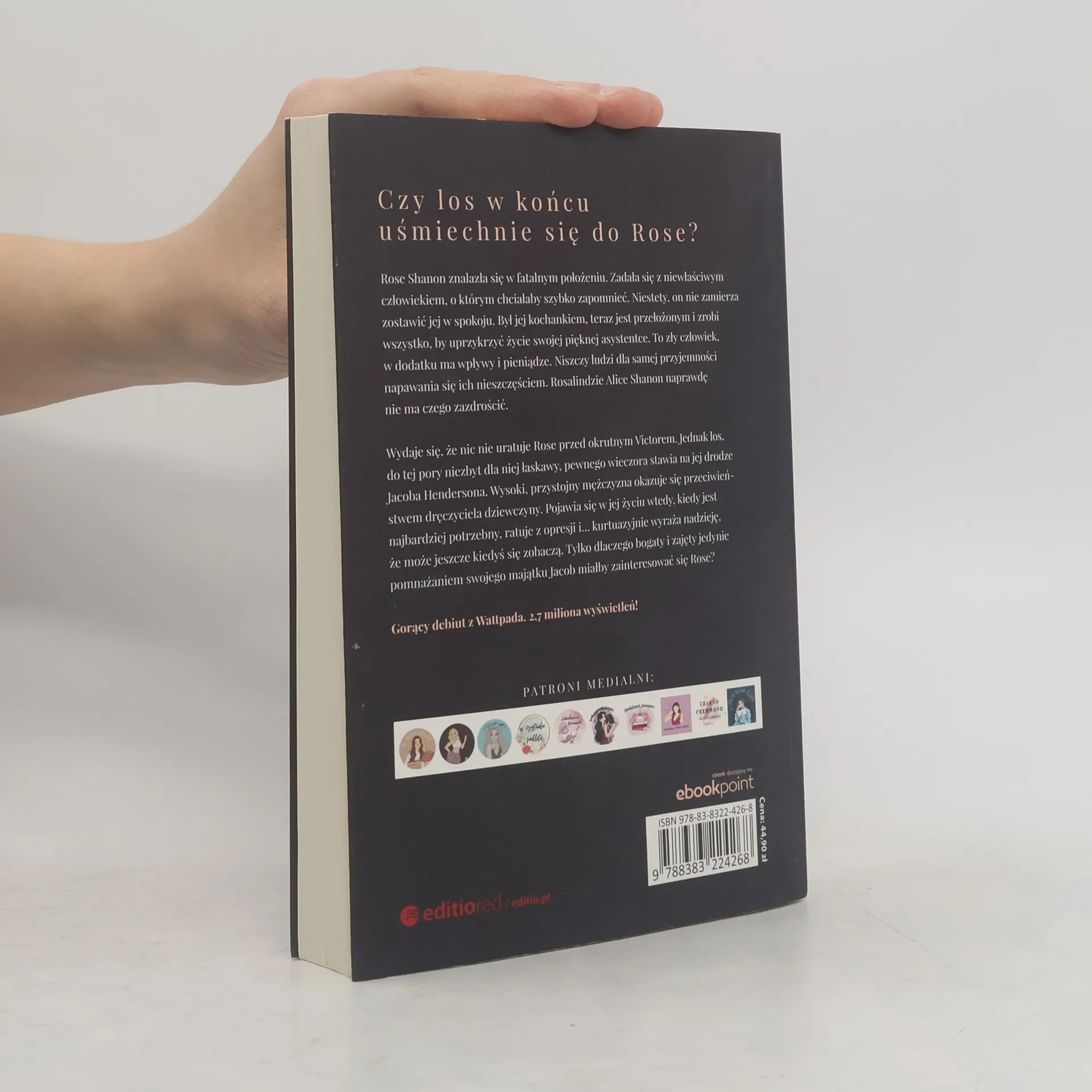 Zadała się z niewłaściwym człowiekiem, o którym chciałaby szybko zapomnieć. Niestety, on nie zamierza zostawić jej w spokoju. Był jej kochankiem, teraz jest przełożonym i zrobi wszystko, by uprzykrzyć życie swojej pięknej asystentce. To zły człowiek, w dodatku ma wpływy i pieniądze. Niszczy ludzi dla samej przyjemności napawania się ich nieszczęściem. Rosalindzie Alice Shanon naprawdę nie ma czego zazdrościć.Wydaje się, że nic nie uratuje Rose przed okrutnym Victorem. Jednak los, do tej pory niezbyt dla niej łaskawy, pewnego wieczora stawia na jej drodze Jacoba Hendersona. Wysoki, przystojny mężczyzna okazuje się przeciwieństwem dręczyciela dziewczyny. Pojawia się w jej życiu wtedy, kiedy jest najbardziej potrzebny, ratuje z opresji i... kurtuazyjnie wyraża nadzieję, że może jeszcze kiedyś się zobaczą. Tylko dlaczego bogaty i zajęty jedynie pomnażaniem swojego majątku Jacob miałby zainteresować się Rose?