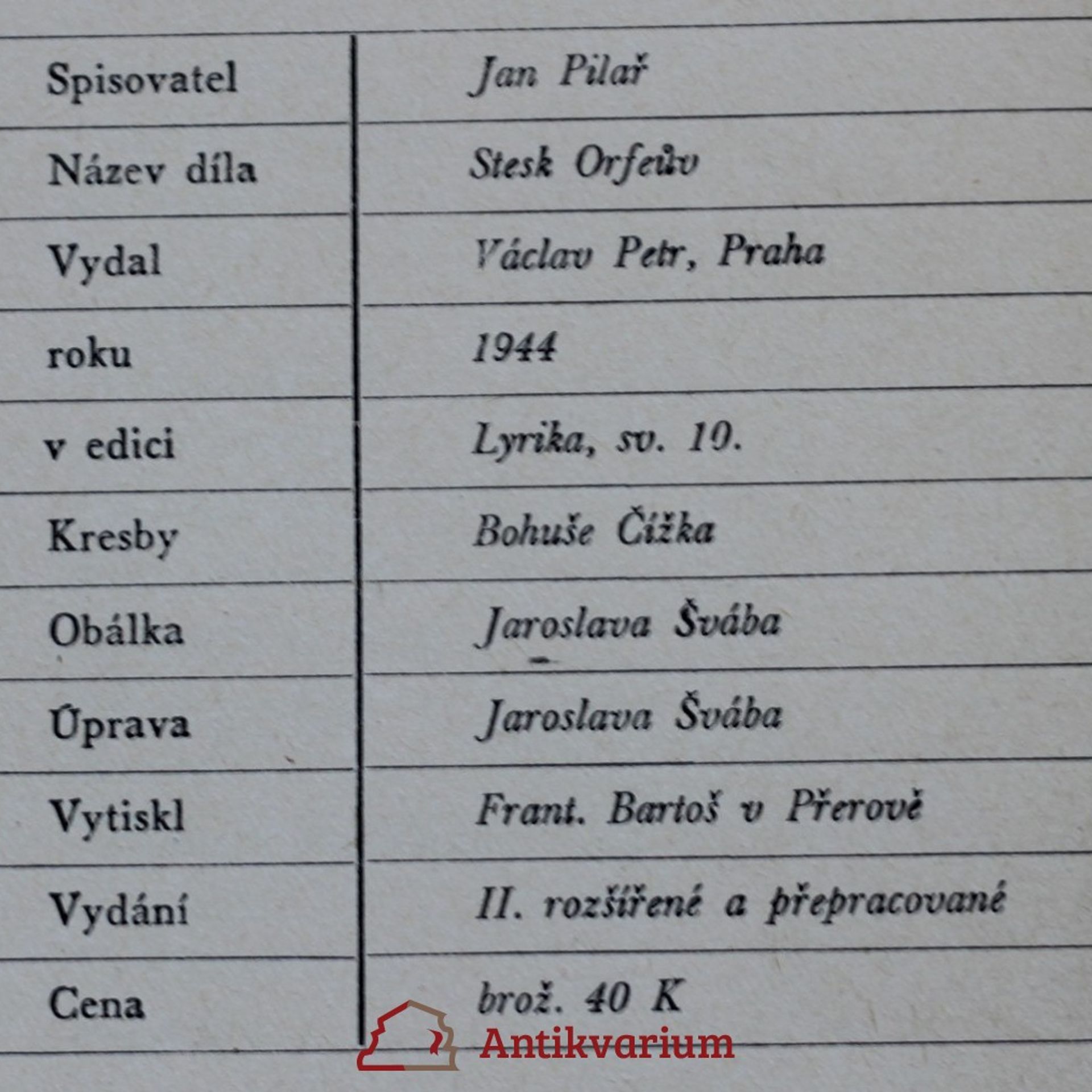 Stesk Orfeův : [básně], Jan Pilař
