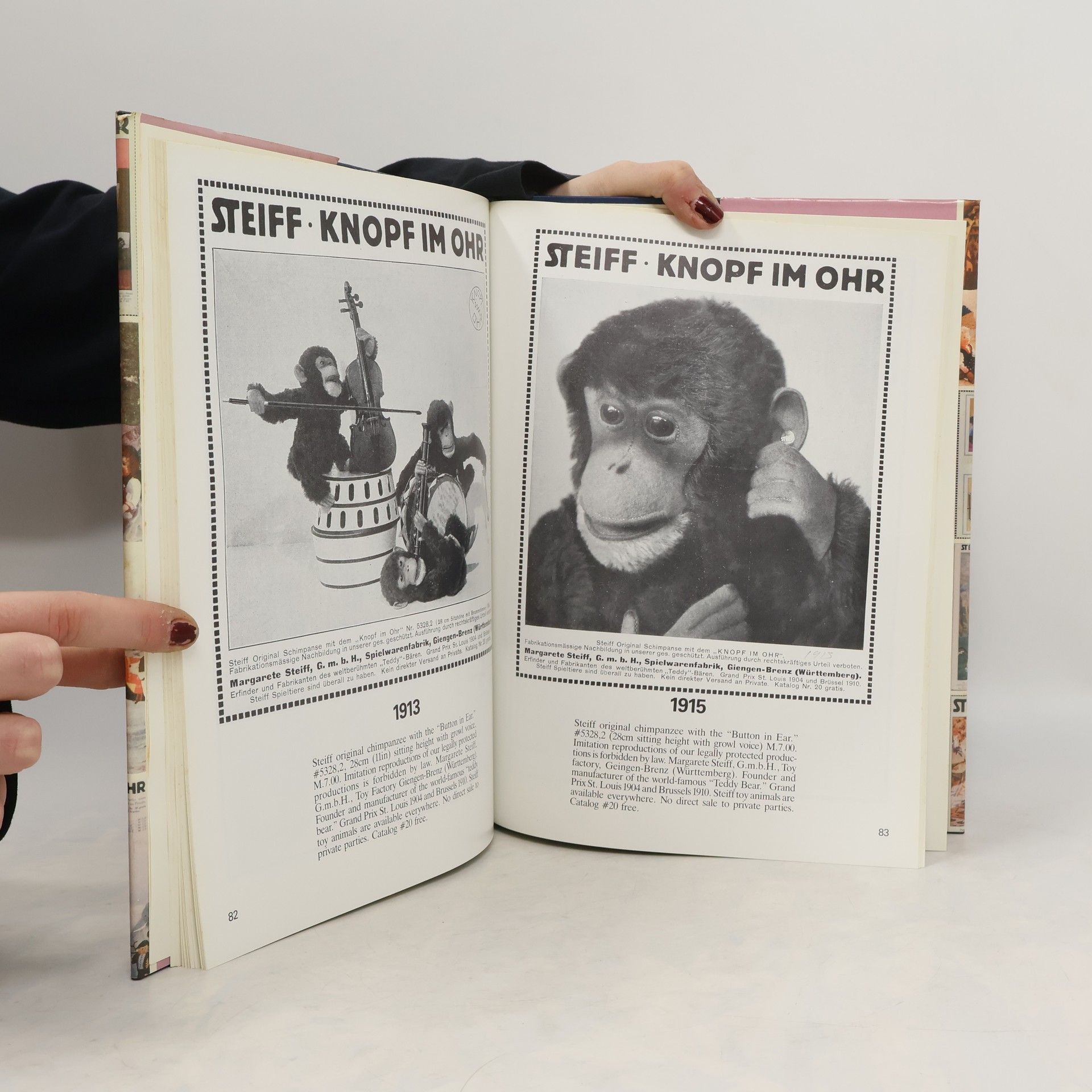 All lovers of Steiff dolls & toys will be delighted by this compilation of antique Steiff advertisements which were run in the popular German illustrated newspaper Illustrirte Zeitung between the years 1911 & 1929. Every collector will enjoy finding favorite bears & toys in the ads -- as an aid to dating them, to finding out their original costs & to see how they were originally promoted. A nostalgic look back at the playthings of yesterday, this group of ads, augmented by postcards of the period, give us a clue to the variety & creativity of the children's toys made by this famous German company & partially explain the reverence with which these toys are held today.