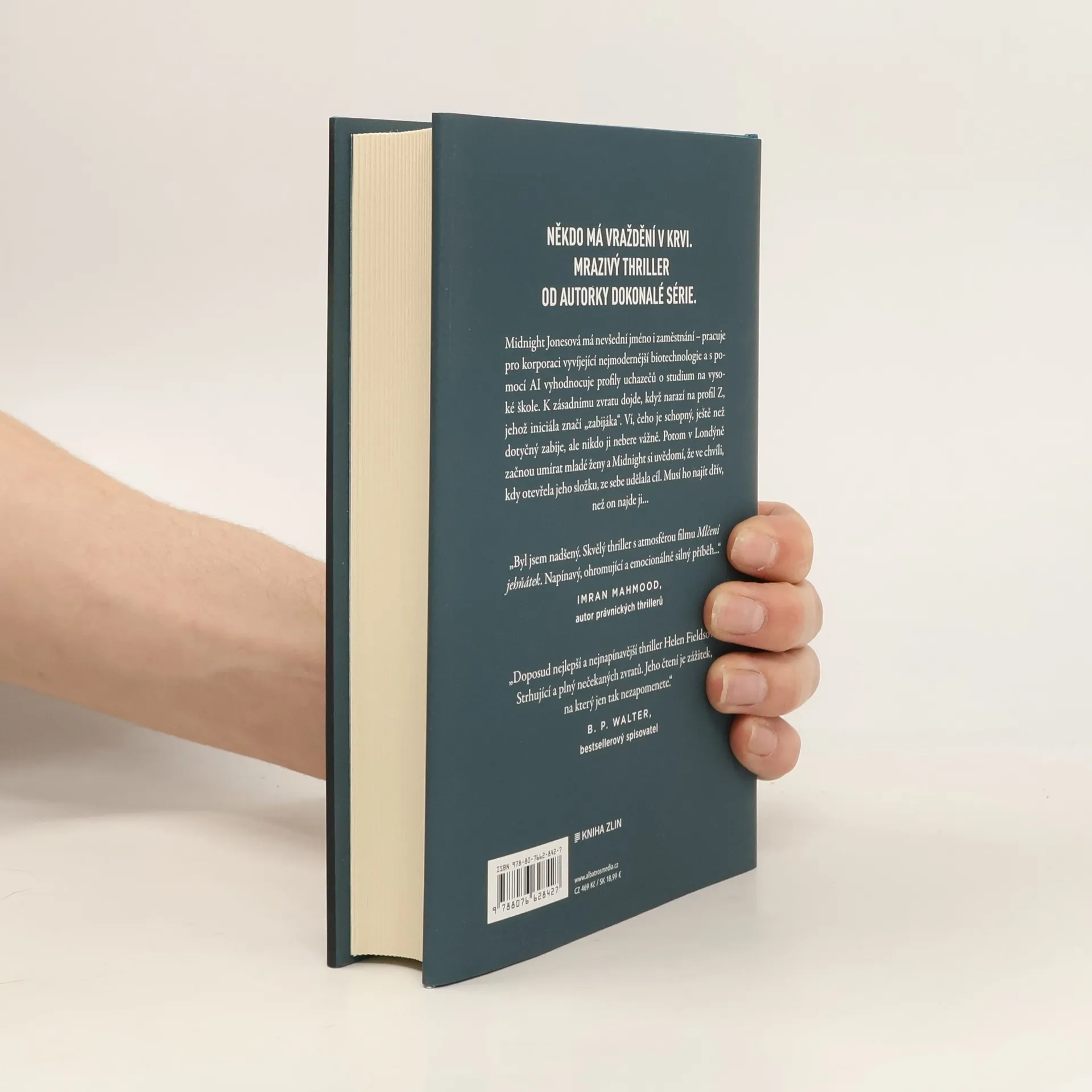 Někdo má vraždění v krvi. Mrazivý thriller od autorky Dokonalé série. Midnight Jonesová má nevšední jméno i zaměstnání – pracuje pro korporaci vyvíjející nejmodernější biotechnologie a s pomocí AI vyhodnocuje profily uchazečů o studium na vysoké škole. K zásadnímu zvratu dojde, když narazí na profil Z, jehož iniciála značí „zabijáka“. Ví, čeho je schopný, ještě než dotyčný zabije, ale nikdo ji nebere vážně. Potom v Londýně začnou umírat mladé ženy a Midnight si uvědomí, že ve chvíli, kdy otevřela jeho složku, ze sebe udělala cíl. Musí ho najít dřív, než on najde ji…