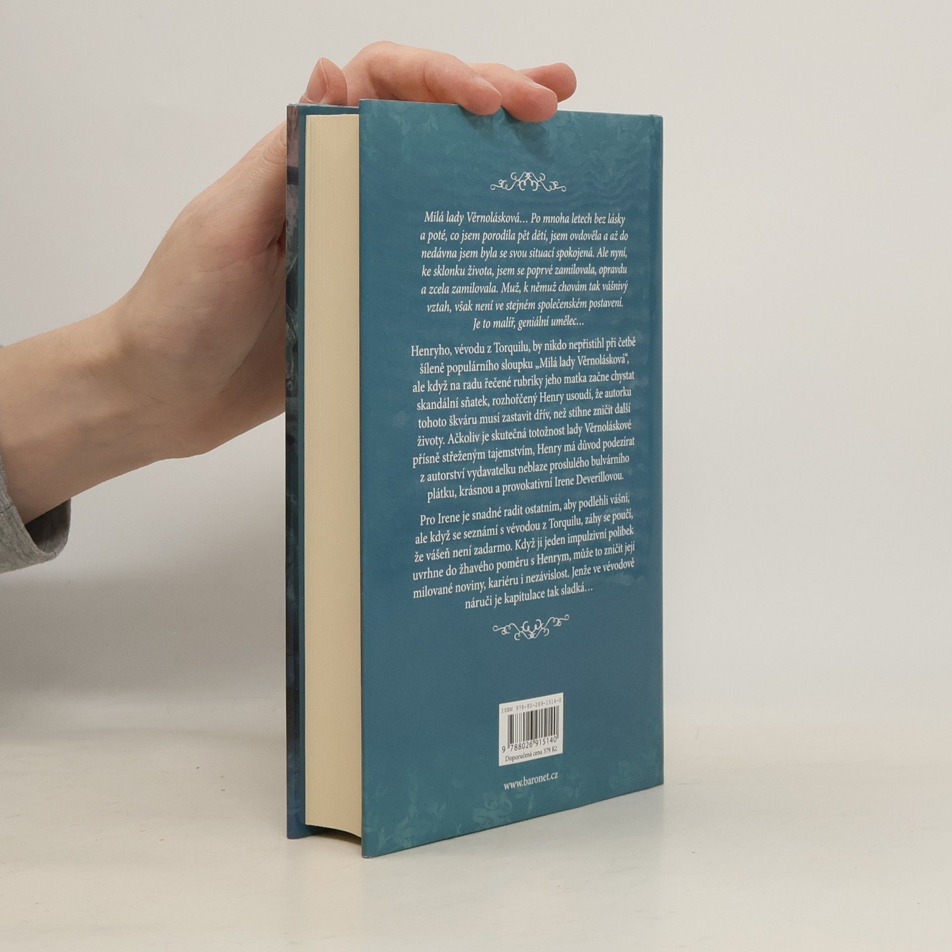 Milá lady Věrnolásková… zamilovala jsem se, upřímně a úplně zamilovala, poprvé. Muž, k němž chovám tak vášnivé city, však není ve stejném postavení jako já. Je malíř, geniální umělec. Netřeba dodávat, že moje rodina neschvaluje… Henryho, vévodu z Torquilu, by nikdo nepřistihl při četbě šíleně populárního sloupku „Milá lady Věrnolásková,“ ale když na radu řečené rubriky jeho matka začne chystat skandální sňatek, rozhořčený Henry usoudí, že autorku tohoto škváru musí zastavit dřív, než stihne zničit další životy. Ačkoliv je skutečná totožnost lady Věrnoláskové přísně střeženým tajemstvím, Henry má důvod podezírat z autorství vydavatelku neblaze proslulého bulvárního plátku, krásnou a provokativní Irene Deverillovou. Pro Irene je snadné radit ostatním, aby podlehli vášni, ale když se seznámí s vévodou z Torquilu, záhy se poučí, že vášeň není zadarmo. Když ji jeden impulzivní polibek uvrhne do žhavého poměru s Henrym, může to zničit její milované noviny, kariéru i nezávislost. Jenže ve vévodově náruči je kapitulace tak sladká…
