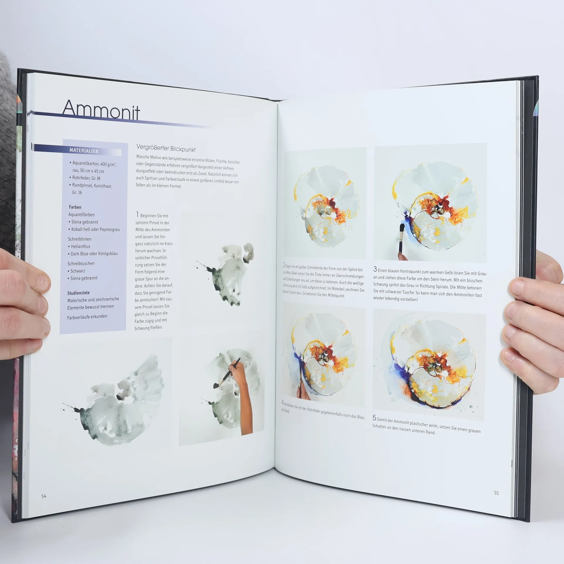 Linie trifft Fläche. Motive mit Rohrfeder, Spritzflasche, Tinte, Tusche und Acrylfarben, Monika Reiter