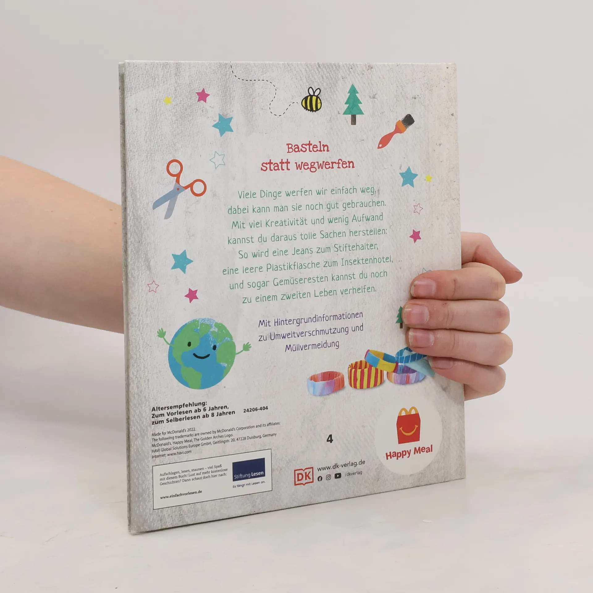 Basteln mit Kindern und gleichzeitig die Umwelt schützen!  Nicht wegwerfen – das kann man noch gebrauchen! Dieses clevere Bastelbuch ist die perfekte Kombi aus Kreativität & Nachhaltigkeit. Es zeigt umweltbewussten Kids, wie sie aus Müll nützliche Dinge und schöne Geschenke herstellen. So entstehen aus alten T-Shirts stylische Taschen oder aus Plastikflaschen individuelle Blumentöpfe. Dazu gibt es hilfreiche Umwelttipps von der „kleinen Erde“, die die fantasievollen Bastelprojekte mit wichtigen Umweltthemen verknüpft.  Kreatives Kinderbuch zum Umweltschutz: Recyceln mal anders!  Ob Plastikvermeidung, Klimawandel oder unser Konsumverhalten – die Menschheit macht der Erde ganz schön zu schaffen. Kein Wunder, dass sich besonders Kinder immer mehr den Kopf über die Zukunft unseres Planeten zerbrechen. Dieses originelle Upcycling-Buch nimmt sich den wichtigsten Umweltthemen an. Mit kreativen Bastelideen und Tipps zeigt es jungen Umweltschützern, wie sie im Alltag ihren Teil zum Erhalt unserer Erde beitragen können. Originelle Upcycling-Bastelideen für die ganze Familie:  • Wichtige Umweltthemen. • Über 15 fantasievolle Upcycling-Ideen. • Kinderleichte Umsetzung. • Interessante Fakten und clevere Umwelttipps.  Mit einfallsreichen Zero-Waste-Ideen die Erde ein bisschen besser machen – der perfekte Begleiter für alle Nachwuchs-Umweltschützer! Buch ist bei Antolin. de verfügbar.